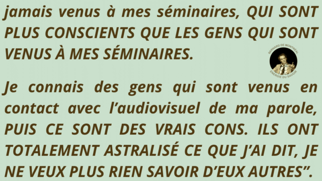 Les propos de Bernard de Montréal concernant la diffusion de son œuvre éclairent cette position. De son vivant, certaines restrictions répondaient à un contexte précis, lié à la protection d’un lien vibratoire encore fragile face à des abus de confiance.