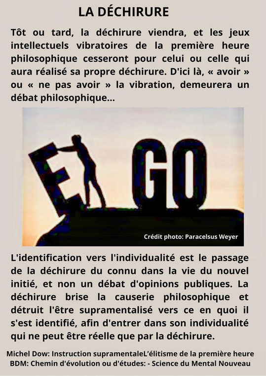 Michel Dow: « Tôt ou tard, la déchirure viendra, et les jeux intellectuels vibratoires de la première heure philosophique cesseront pour celui ou celle qui aura réalisé sa propre déchirure. D’ici là, « avoir » ou « ne pas avoir » la vibration, demeurera un débat philosophique…