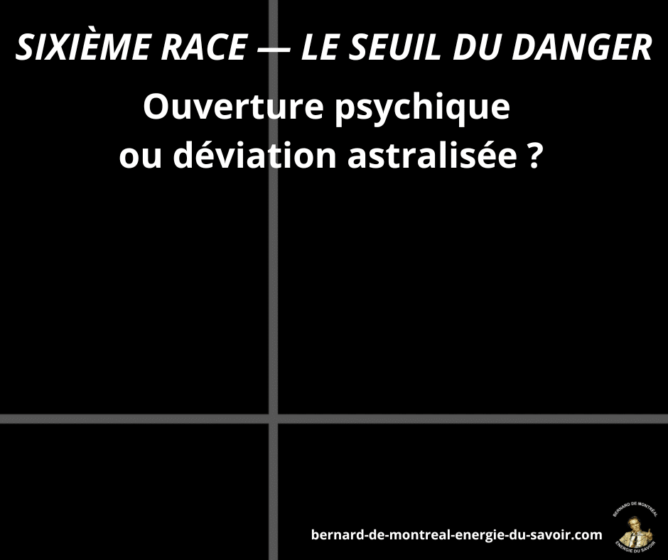 Le commencement de la sixième race-racine inaugure une phase de transition critique pour l’humanité. Jamais l’homme n’aura disposé d’un tel accroissement de sensibilité et de perception des plans invisibles, et jamais le risque de dérive n’aura été aussi élevé.