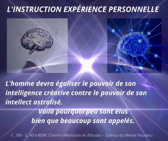 L’instruction commence à se comprendre instantanément lorsque l’homme n’a plus de choix que de vivre vibratoirement, c’est-à-dire que lorsque l’homme opère sur le plan matériel avec l’entité qui lui sert de communicateur, c’est-à-dire avec l’intelligence qui lui permet de se réaliser en tant que penseur autonome.