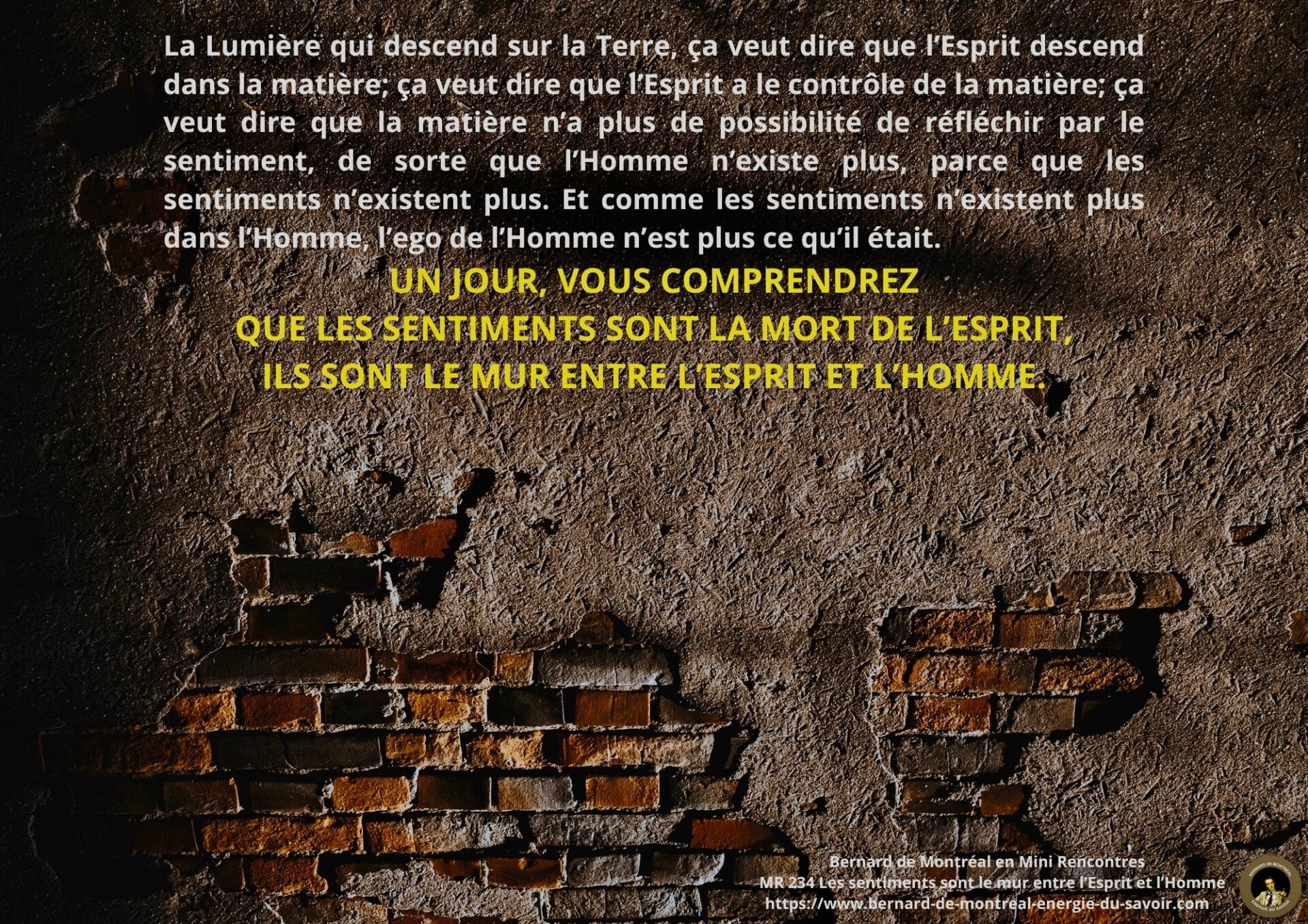 Quand il est dans la matière, il est sentiments, bien là, à ce moment-là il vit simplement les réflexions de l’esprit.