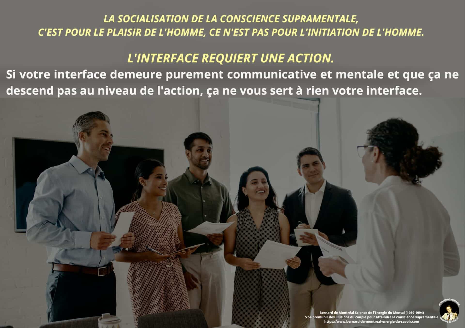 L’interface ce n’est pas rien qu’un aspect mental, l’interface requiert une action. Si votre interface demeure purement communicatif et mental, et que ça ne descend pas au niveau de l’action, ça ne vous sert à rien votre interface.
