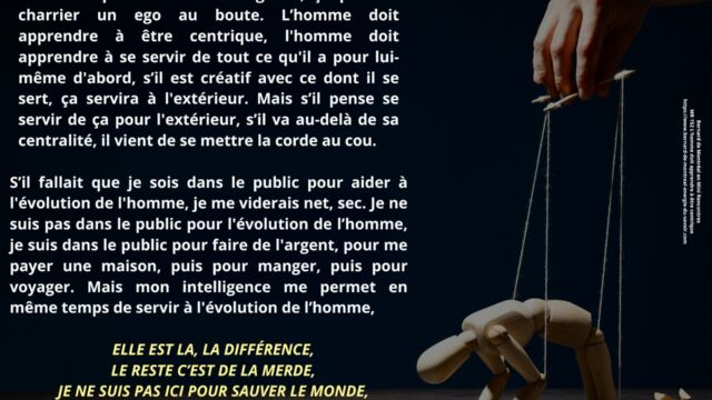 La notion de l’homme fondamentalement bon est également abordée, non comme un principe moral, mais comme une donnée de base altérée par des conditionnements, des pressions sociales et des influences invisibles. Ce ne sont pas les fondements de l’être qui sont en cause, mais les déformations qui se sont superposées à lui.