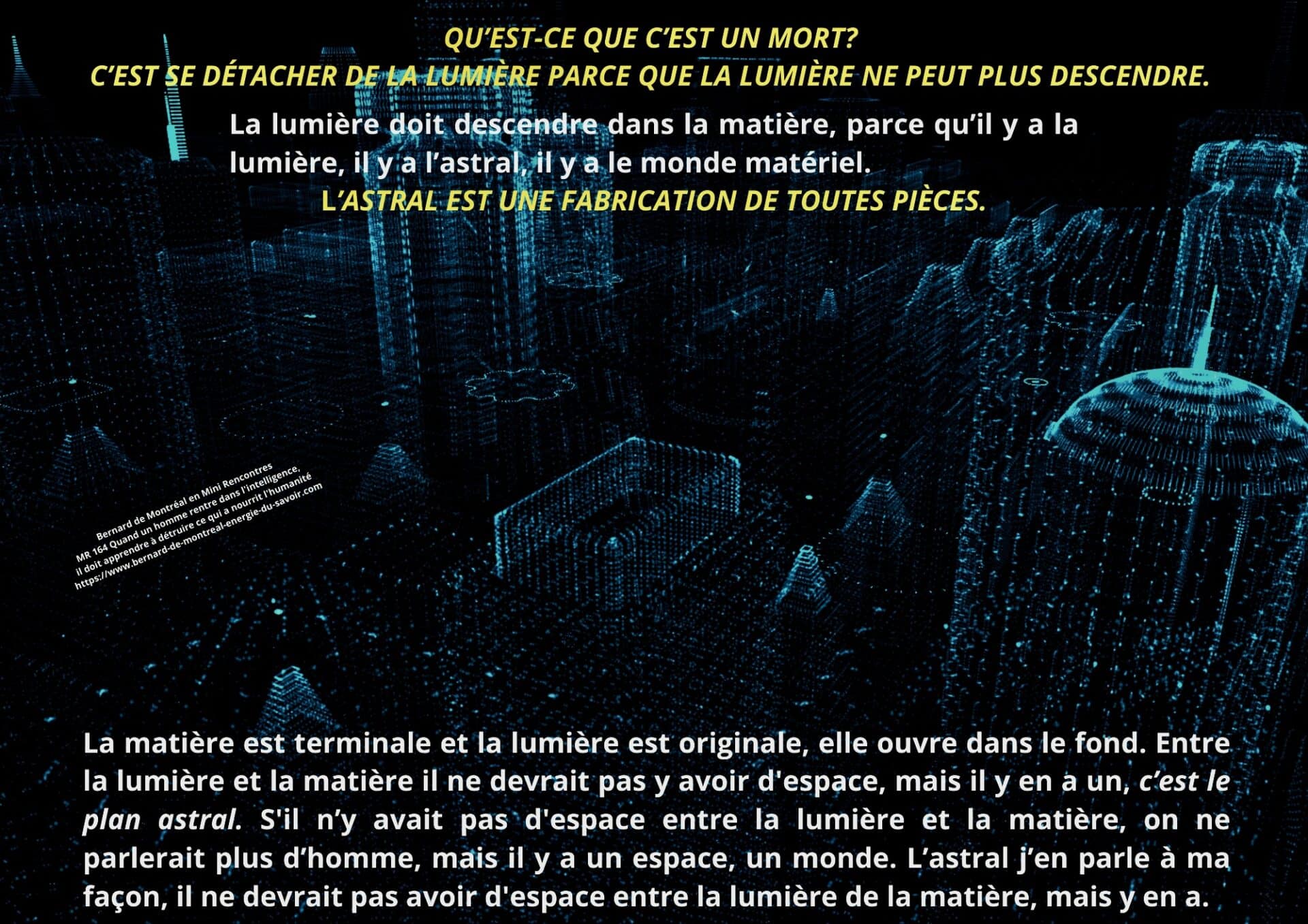 Dans ce passage, il est souligné que la compréhension de ces mécanismes ne peut être symbolique, morale ou psychologique. Une telle approche maintient l’homme dans l’interprétation et le détourne de la réalité vibratoire du phénomène. Seule une compréhension directe, issue de l’intelligence, permet de reconnaître l’influence astrale sans s’y soumettre.