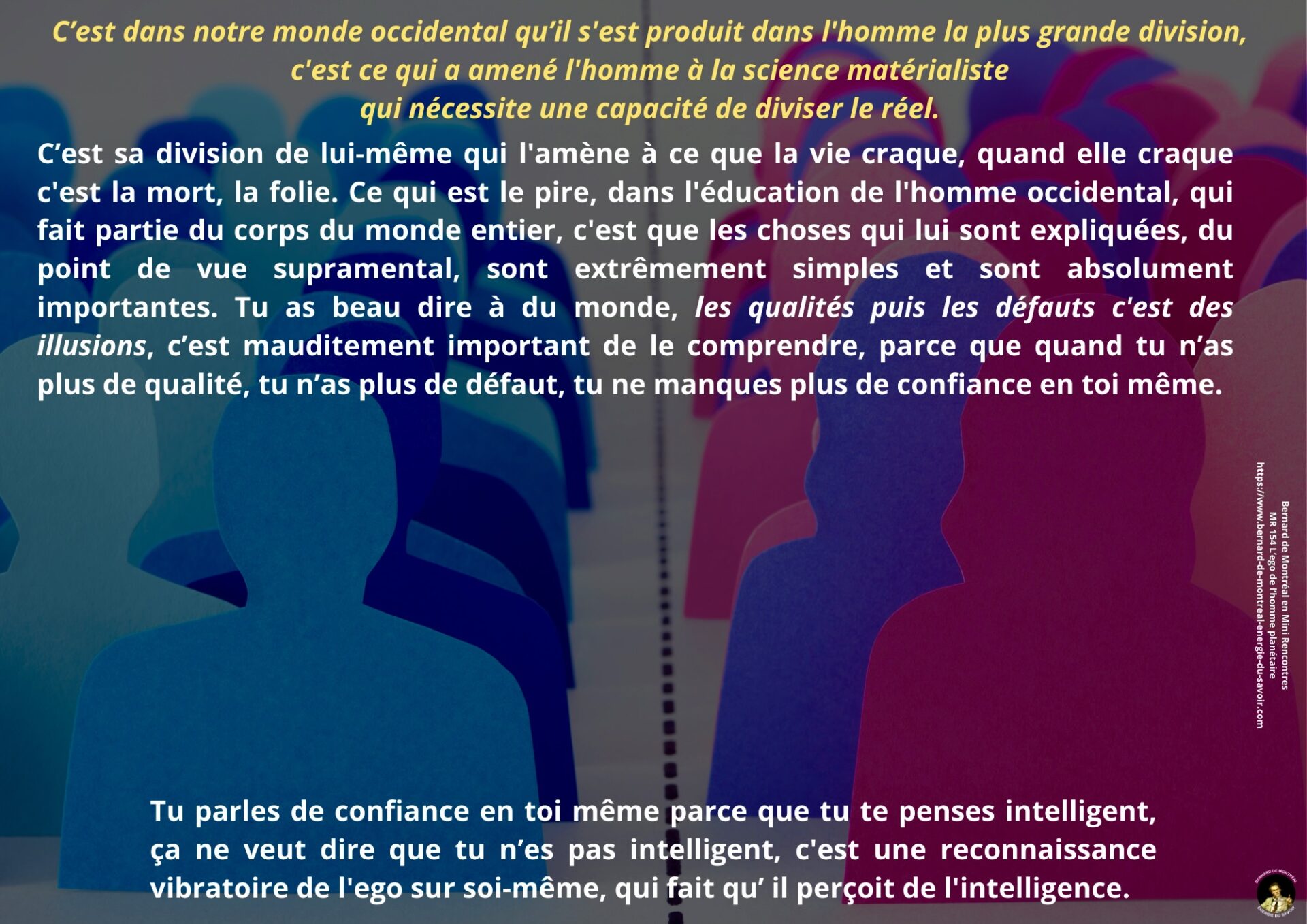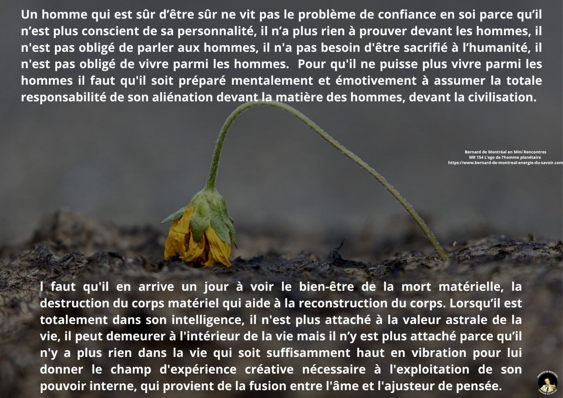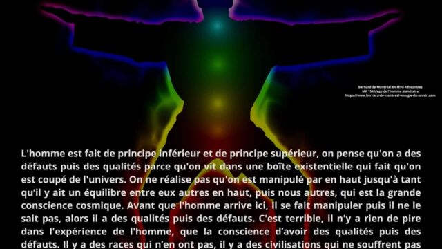 Cette Mini Rencontre aborde la condition de l’homme planétaire telle qu’elle est décrite dans l’instruction de Bernard de Montréal. L’ego y est présenté comme une structure mécanique, une forme de conscience enfermée dans la mémoire et soumise aux influences astrales, donnant à l’homme l’impression d’exister alors qu’il fonctionne principalement par automatisme.