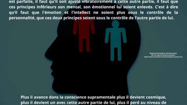 Dans cette transformation, la pensée subjective perd progressivement sa fonction dominante. L’homme nouveau ne vit plus de pensées personnelles, mais d’un rapport direct avec sa source, où la communication s’effectue sans intermédiaire mémoriel. Le « je » fictif cède alors la place à une relation de force consciente entre l’ego et l’esprit.