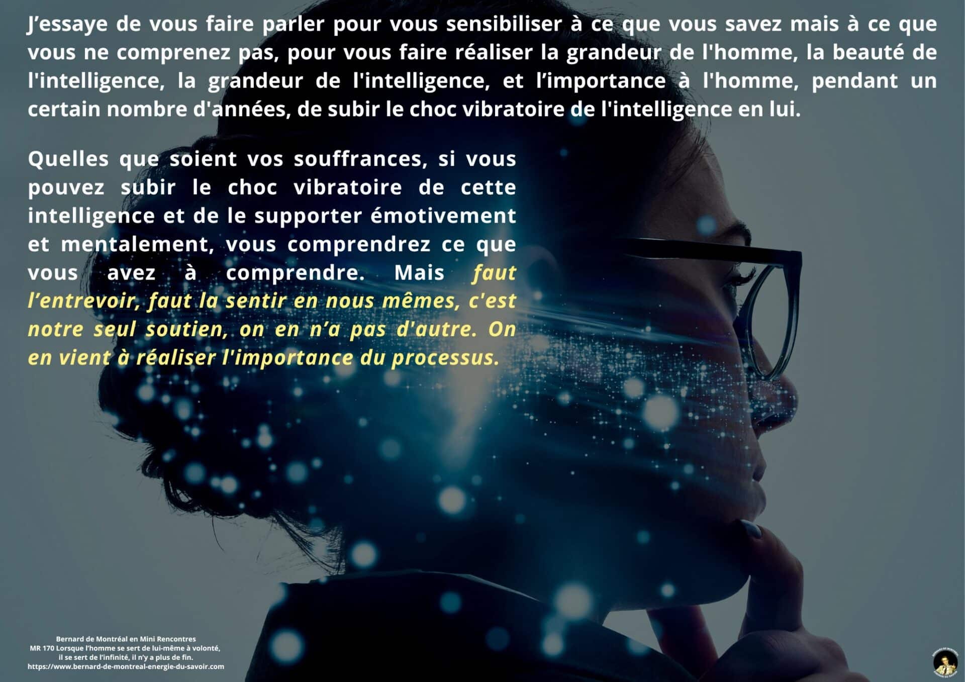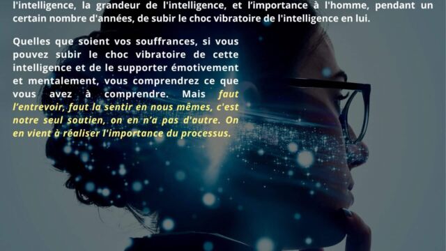 Dans ce passage, une distinction est faite entre l’homme conscient et l’homme dit spirituel. La conscience réelle ne repose pas sur des croyances ou des idéaux, mais sur une intelligence vécue. La souffrance y est présentée comme un processus d’initiation, non comme une punition, permettant le développement de cette intelligence.