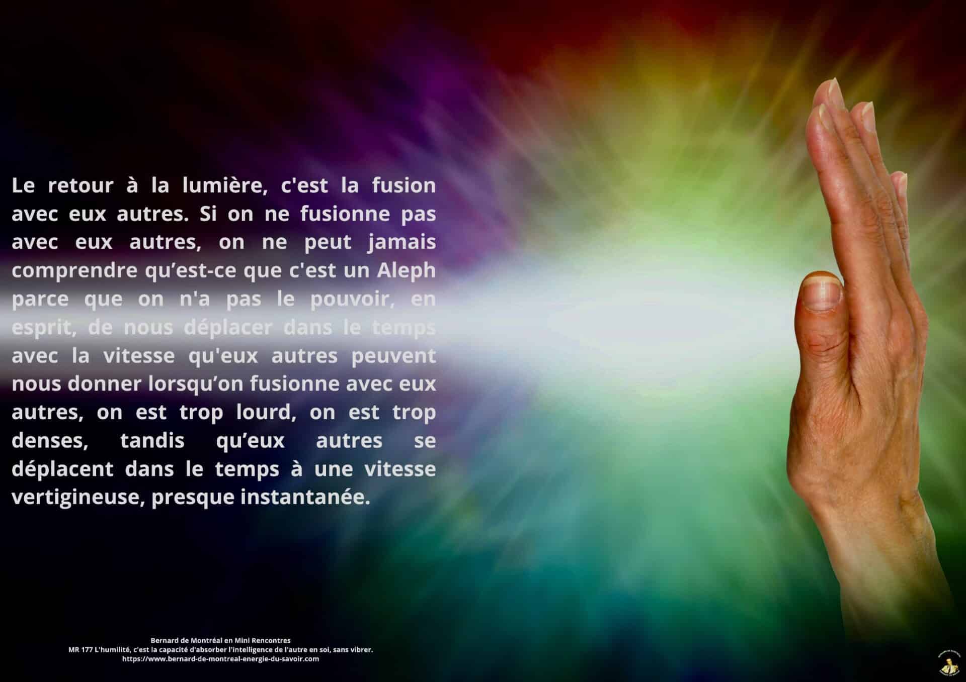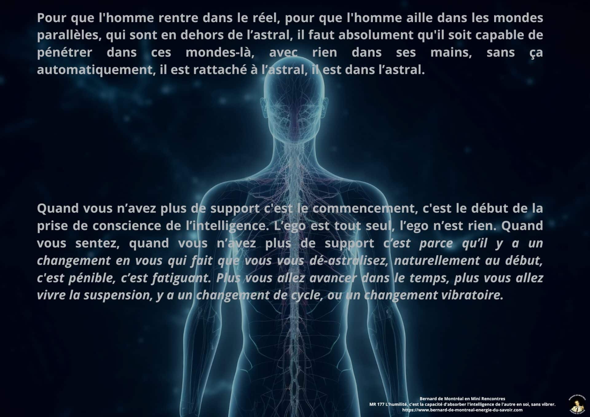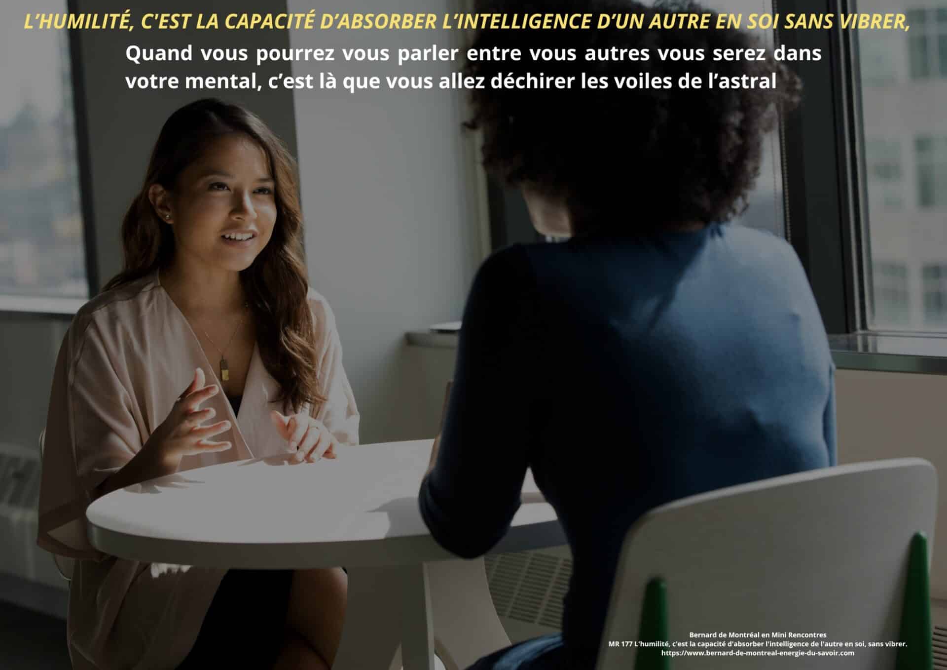 Au fil de l’échange, l’humilité est définie comme la faculté d’absorber l’intelligence de l’autre sans créer de réaction vibratoire. Lorsqu’une information ou une présence est reçue sans résonance émotionnelle ni excitation mentale, l’esprit demeure léger et disponible. Cette neutralité permet à l’intelligence de circuler librement.