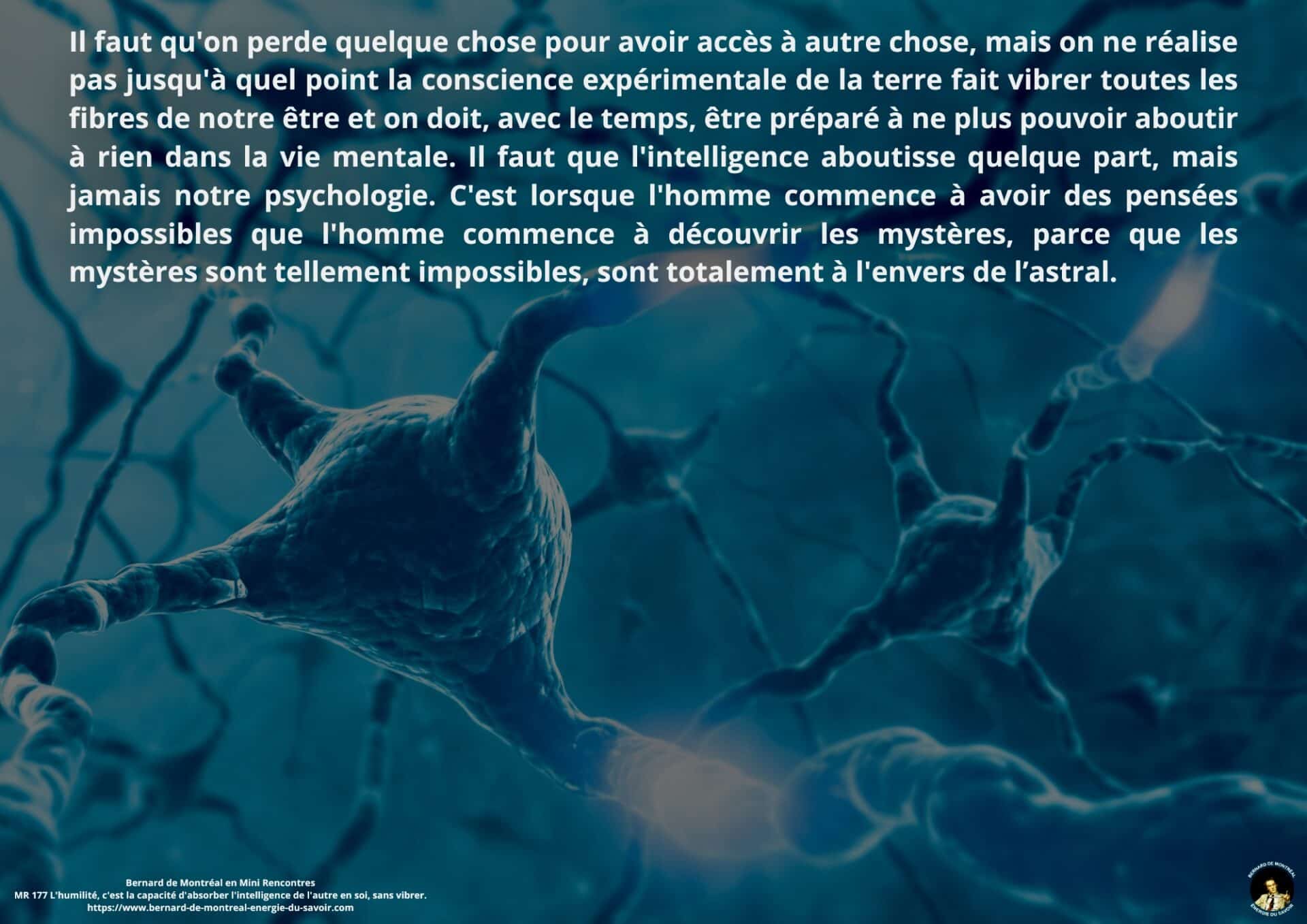 Il est souligné que la conscience terrestre demeure expérimentale. Dans cet état, la pensée tend à alourdir l’esprit et à maintenir l’homme dans l’astral. Descendre dans la matière implique alors de lâcher ces constructions mentales afin de vivre une existence plus simple, détachée et paisible.