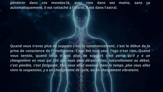 Dans ce passage, la nécessité de préparer les corps à la transmutation est évoquée. Cette préparation consiste à libérer l’intelligence de l’emprise de l’astralité, afin qu’elle puisse s’exprimer sans interférence émotionnelle ou mentale. La légèreté intérieure devient une condition de cette transformation.