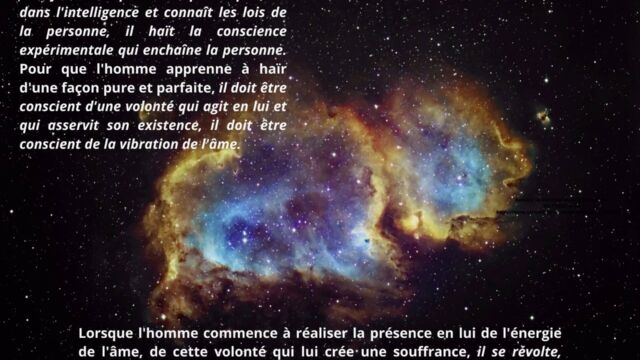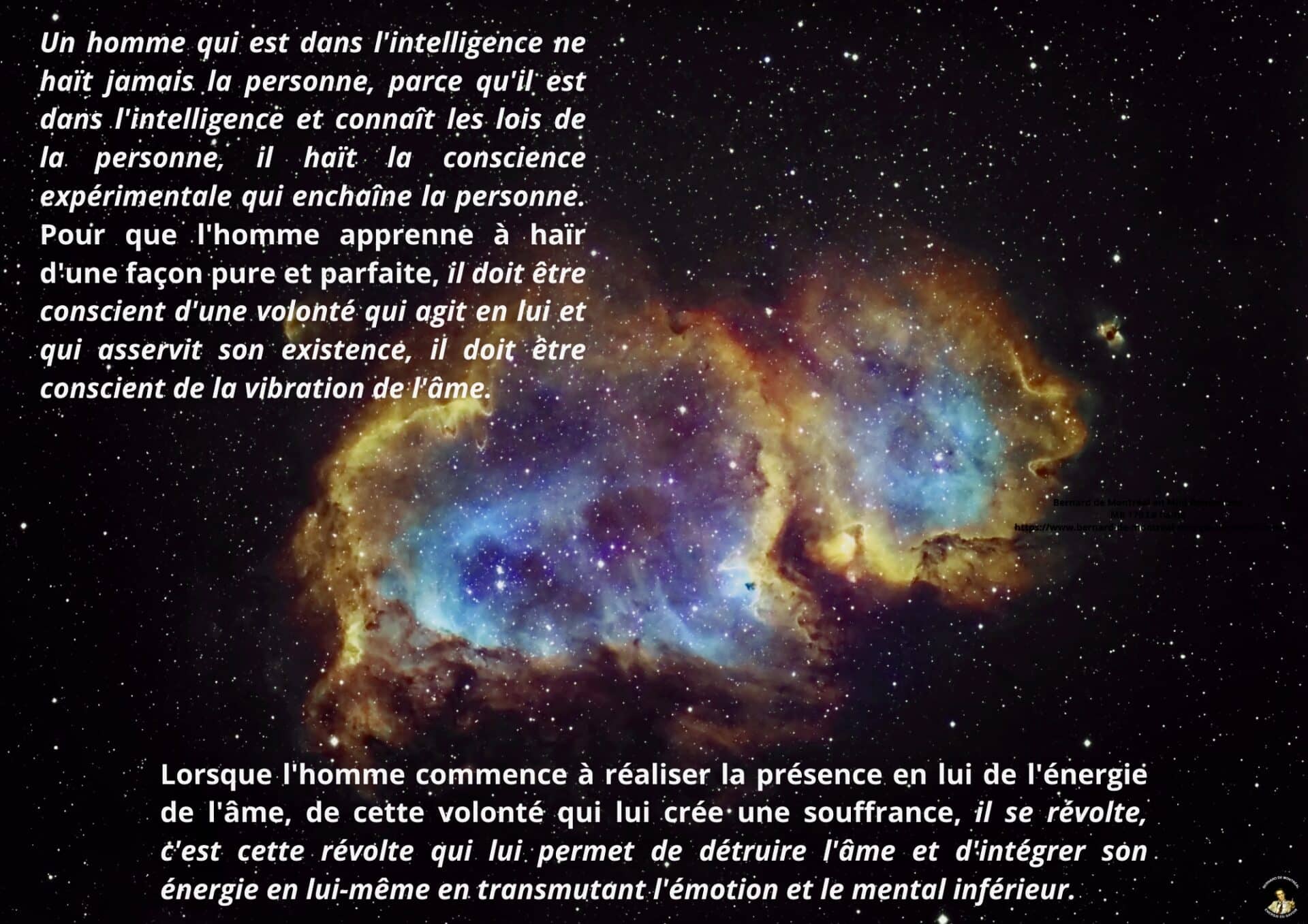 Dans ce passage, la haine cosmique est présentée comme un outil nécessaire à la libération de la conscience expérimentale. Elle permet de rompre avec l’influence de l’âme, non par rejet affectif, mais par une volonté consciente de dissoudre les formes et les mémoires qui ne servent plus l’évolution de l’homme.