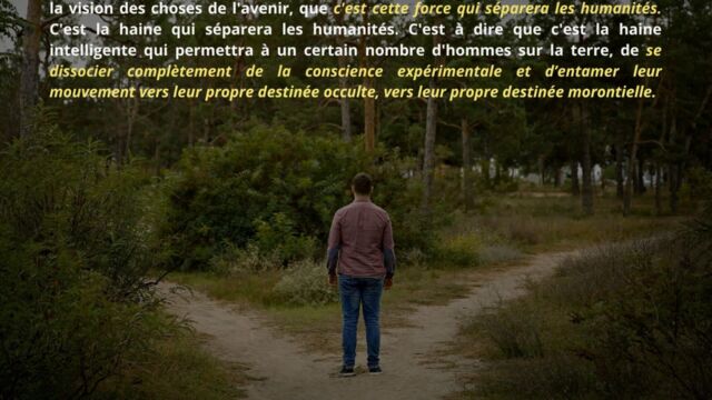 En se libérant de la conscience expérimentale, l’homme accède progressivement à une conscience supramentale. Cette transition ne se fait ni par amour émotionnel ni par idéalisation spirituelle, mais par une volonté ferme soutenue par l’intelligence. La haine cosmique devient ainsi un levier de transformation menant à une liberté réelle, dégagée des cycles anciens et des limitations héritées.