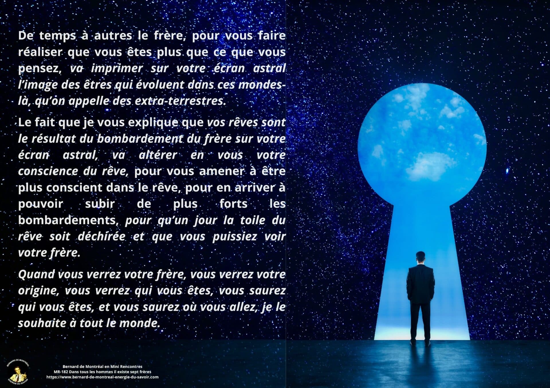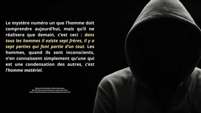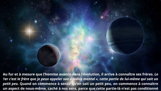 Dans cette Mini Rencontre, les sept frères mentionnés représentent sept parties distinctes de l’homme, reliées à différents niveaux d’intelligence et de conscience. Ils ne désignent pas des entités séparées, mais des composantes de l’être humain inscrites dans une organisation cosmique plus vaste.