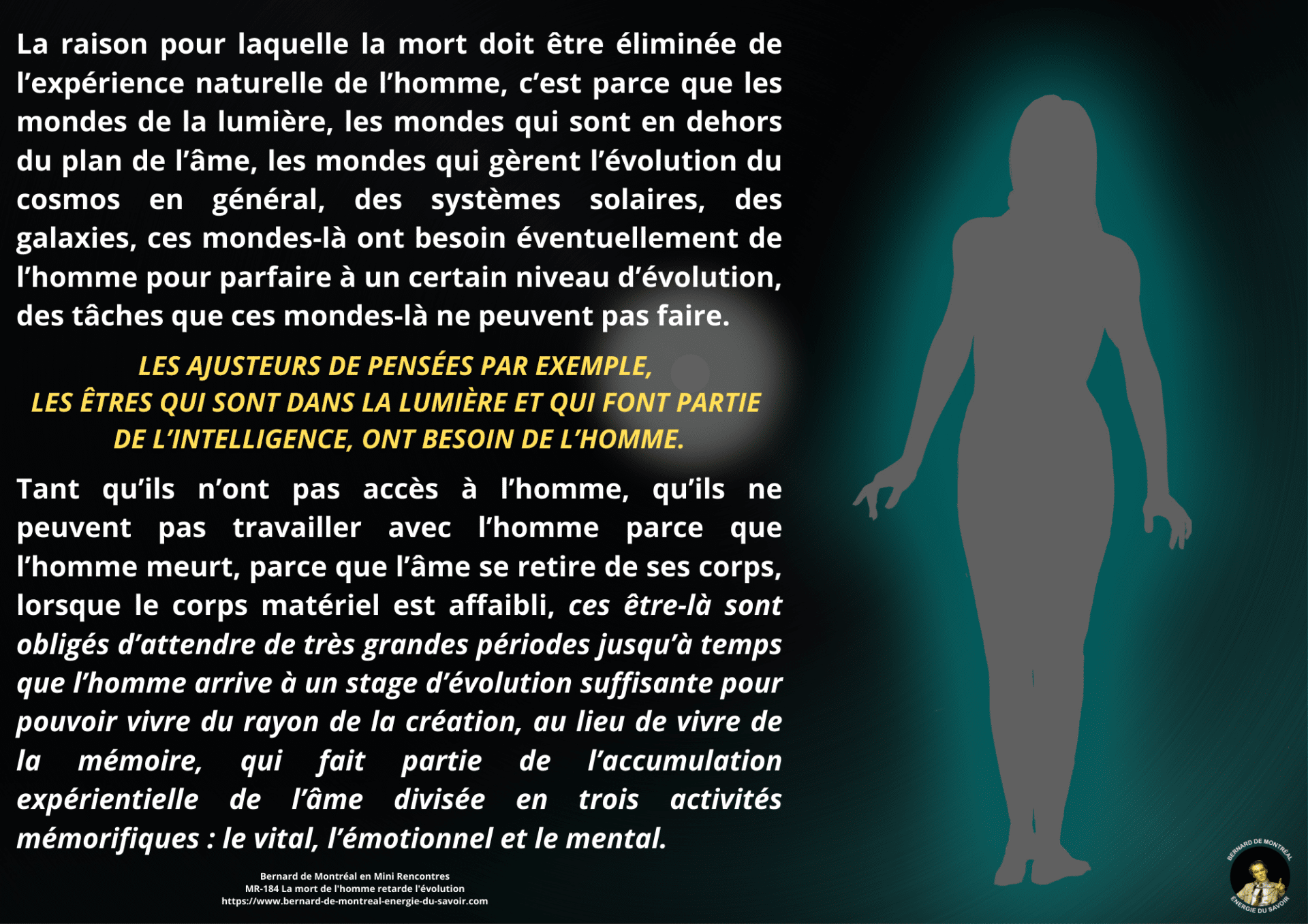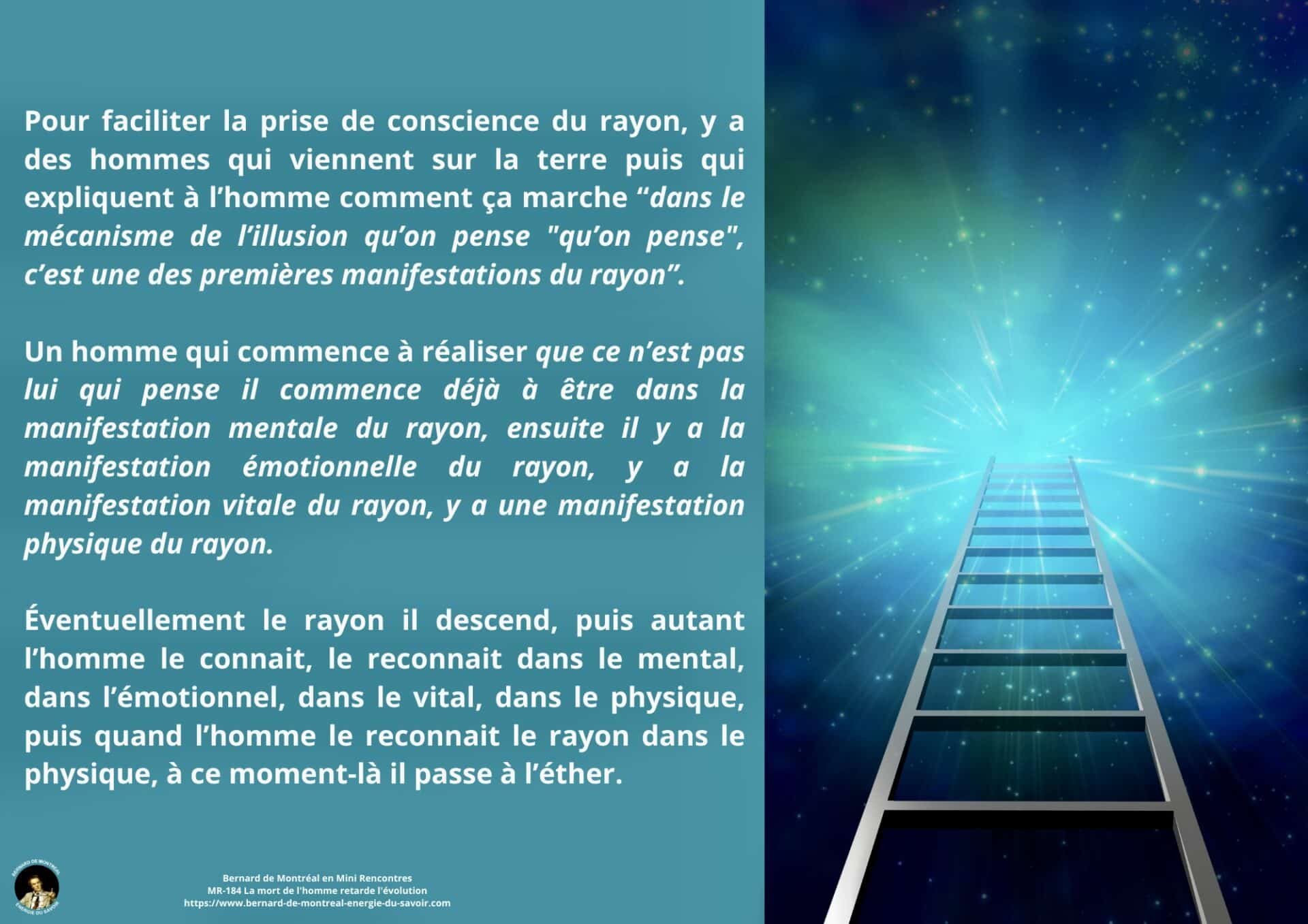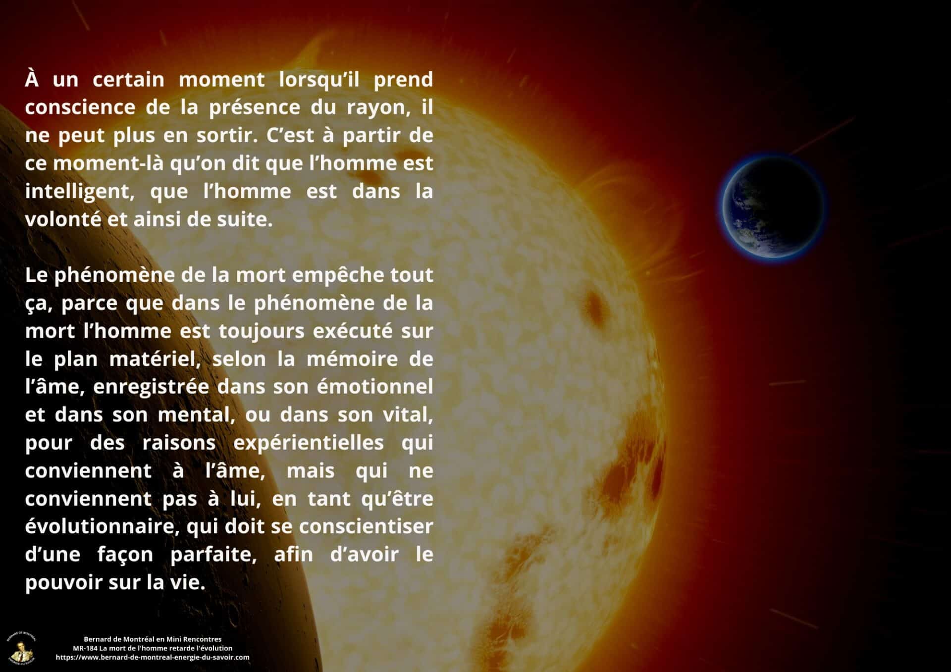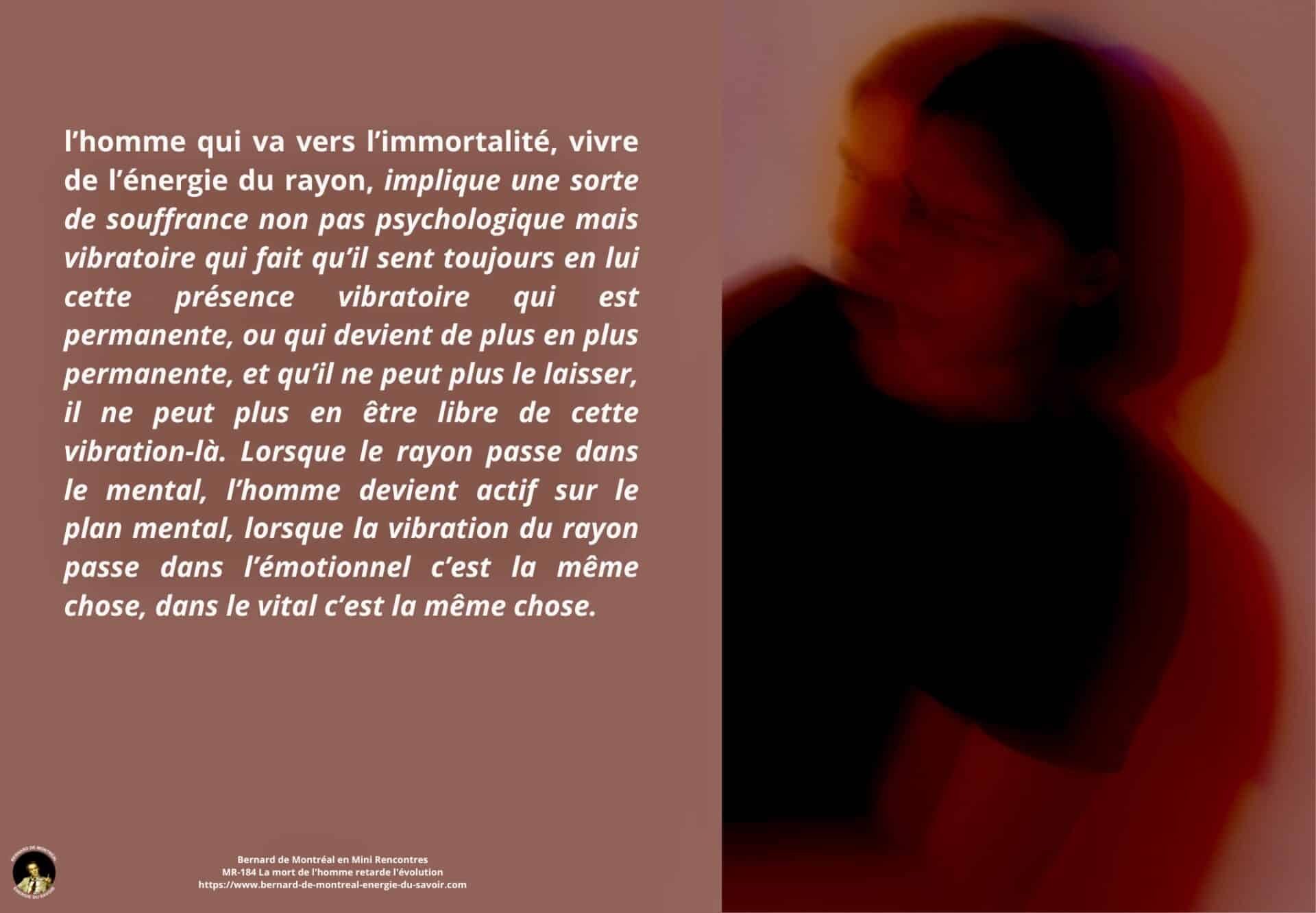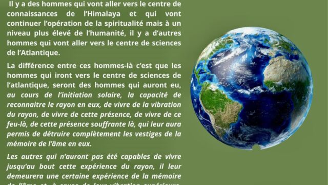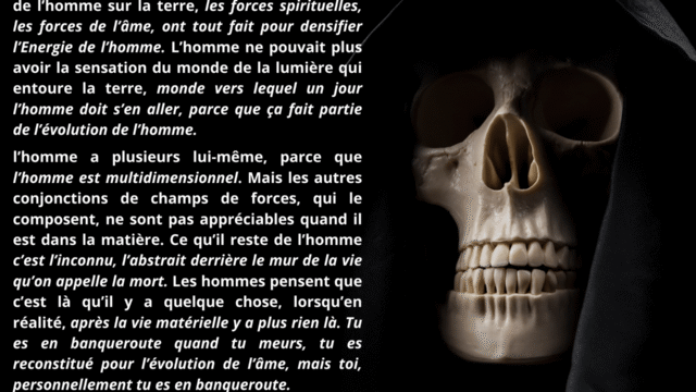 La mort cesse alors d’être un passage obligé. L’homme s’oriente vers une évolution consciente, continue, où l’intelligence ne se perd plus dans la rupture, mais s’établit dans une permanence active au service de l’évolution.