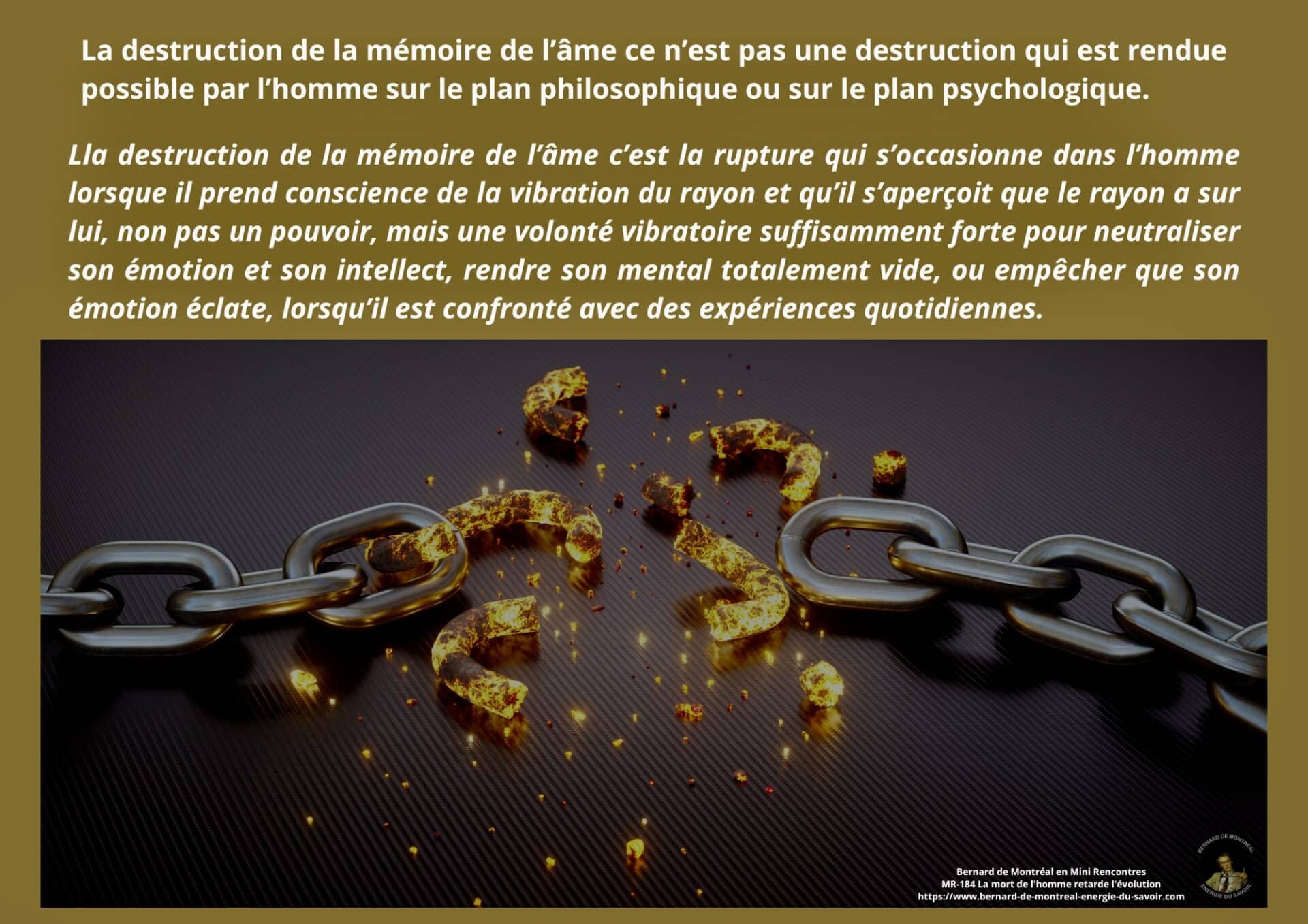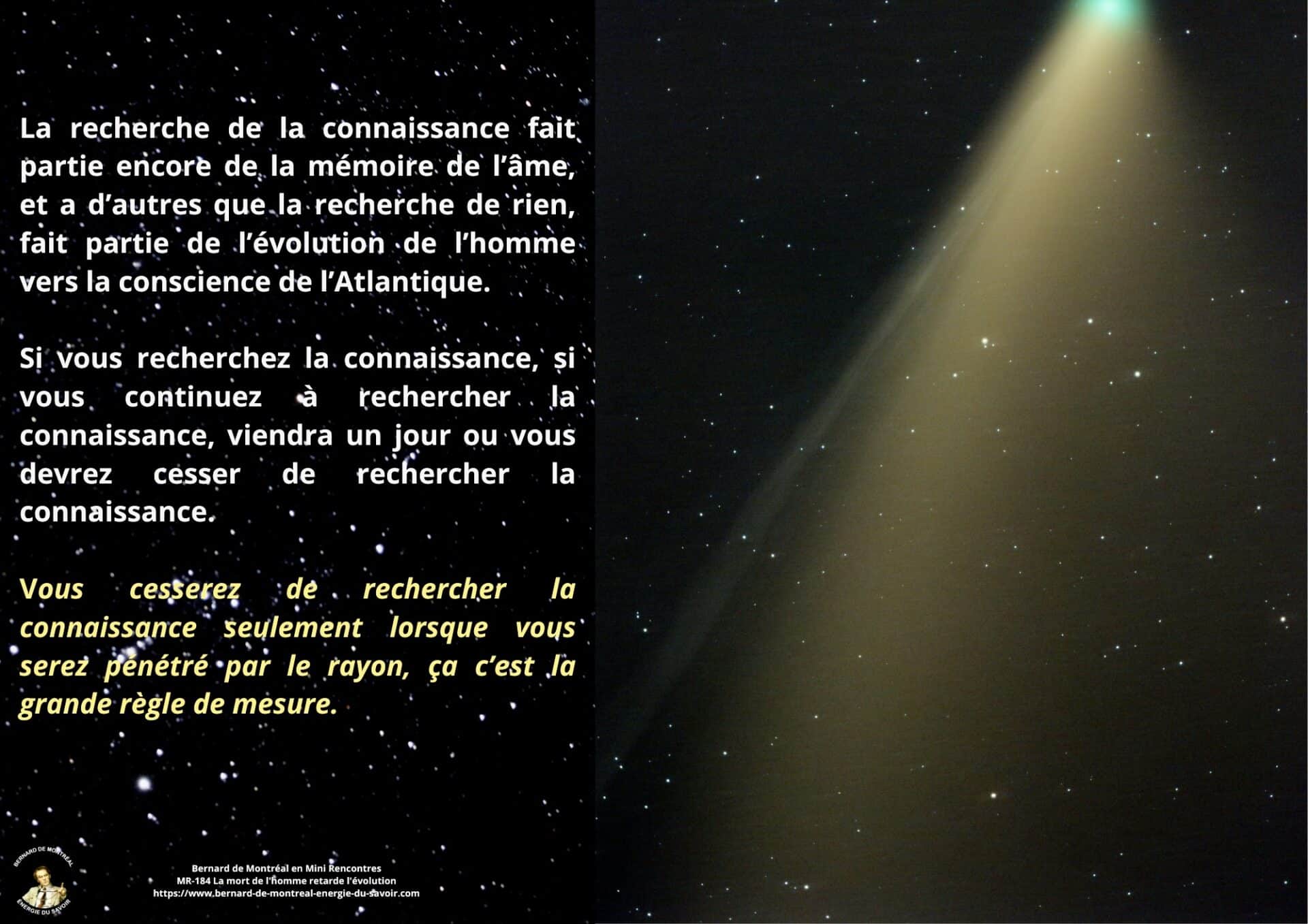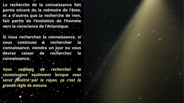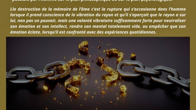 Enfin, il est précisé que la recherche de la connaissance fait partie de la mémoire de l’âme. Accumuler du savoir, comprendre, analyser, demeure inscrit dans le cycle expérimental. La véritable évolution vers la conscience supramentale et la science cosmique exige de vivre directement de la vibration du rayon, sans médiation mémorielle.