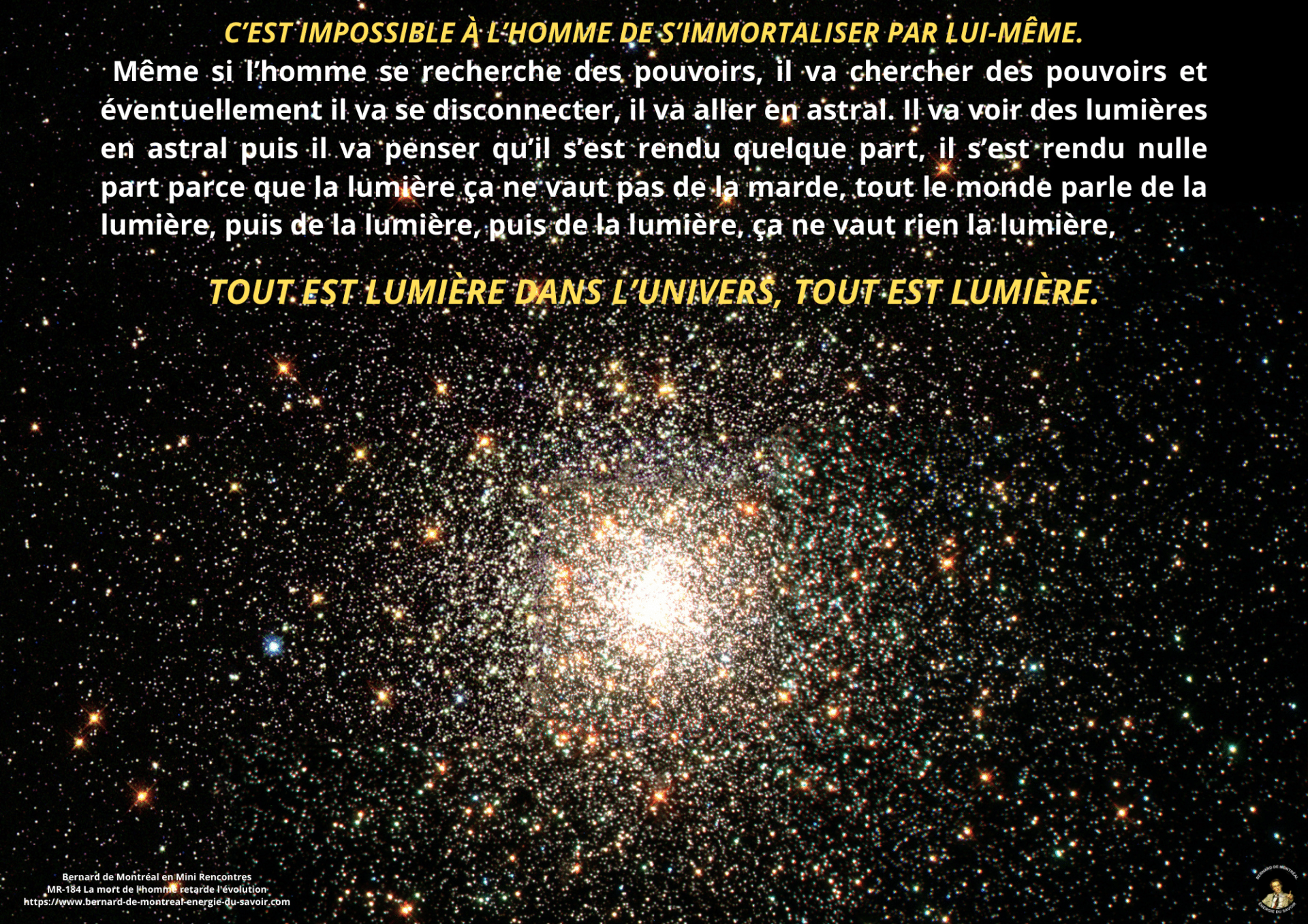 Cette Mini Rencontre aborde la question de la mort non comme une fatalité biologique, mais comme un facteur ayant un impact direct sur l’évolution de la conscience humaine. Le propos vise à distinguer ce qui subsiste après la mort et ce qui, au contraire, est perdu dans le processus évolutif.
