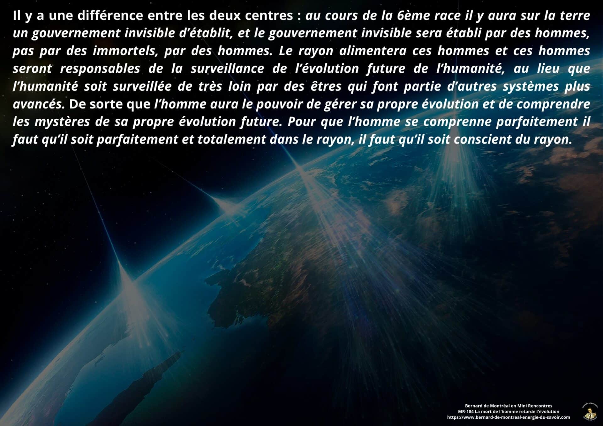 Dans ce passage, l’évolution future de l’humanité est évoquée à travers les races à venir. Il est indiqué que dans la sixième et la septième race, certains hommes ne passeront plus par la mort telle qu’elle est connue aujourd’hui. Ces hommes deviendront immortels et joueront un rôle actif et continu dans l’évolution humaine, sans rupture de conscience.