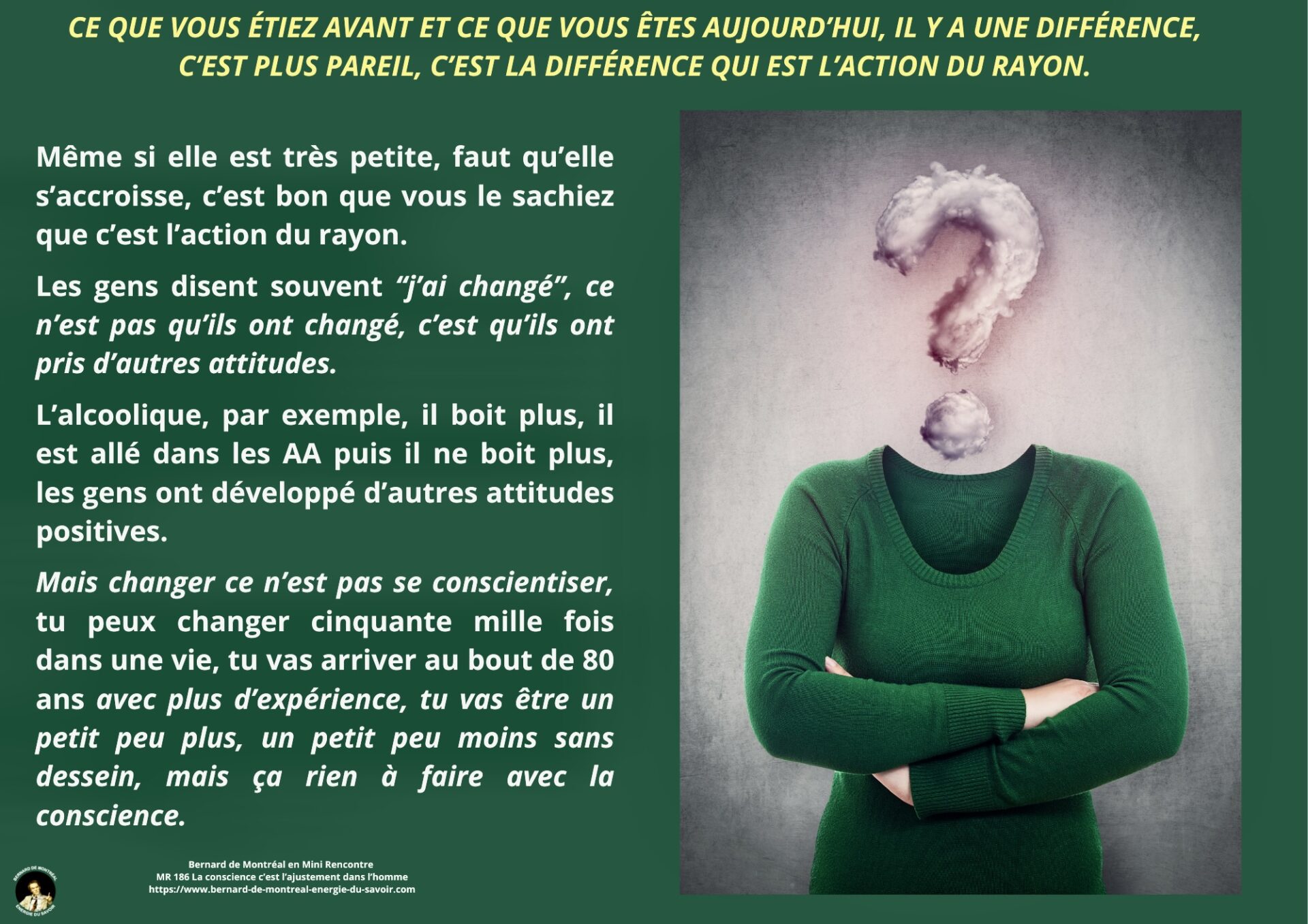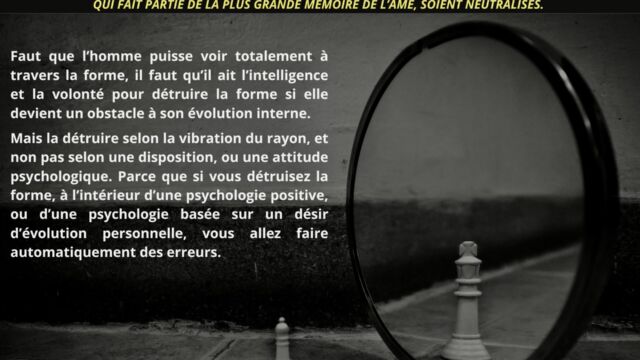 Le thème développé ici précise que la conscience ne résulte pas de changements superficiels, d’attitudes positives ou d’efforts psychologiques. Elle ne s’acquiert pas par des méthodes extérieures, mais par un ajustement intérieur réel. Cet ajustement correspond à la manière dont le rayon s’installe et s’organise dans l’homme.