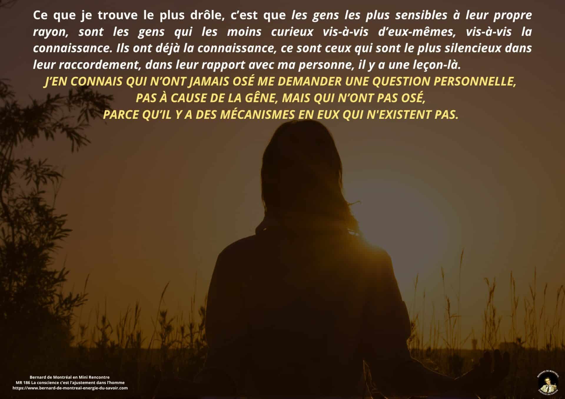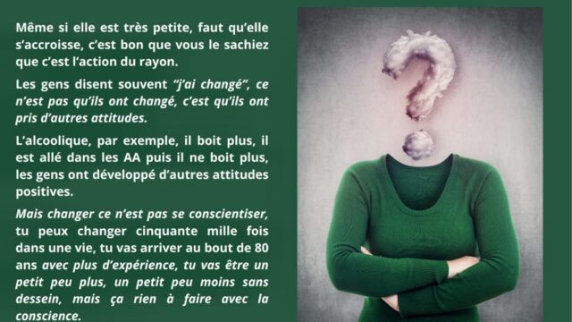 Cette Mini Rencontre aborde la conscience comme un processus d’ajustement intérieur et non comme un état idéalisé à atteindre. Le propos met en évidence que la conscience réelle se vit dans l’instant présent et dépend directement de la capacité de l’homme à s’ajuster à l’intelligence qui le traverse.