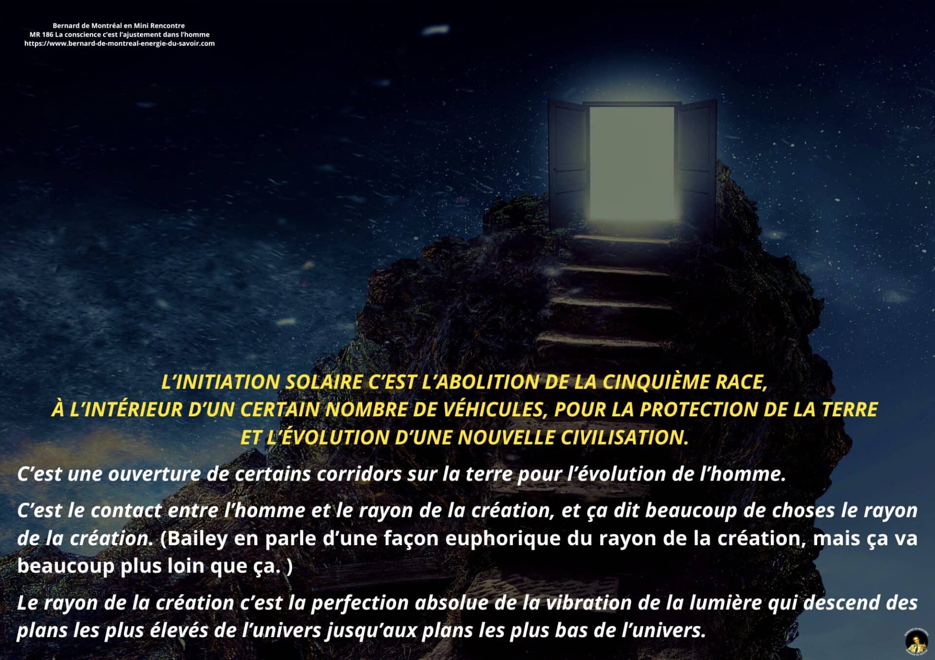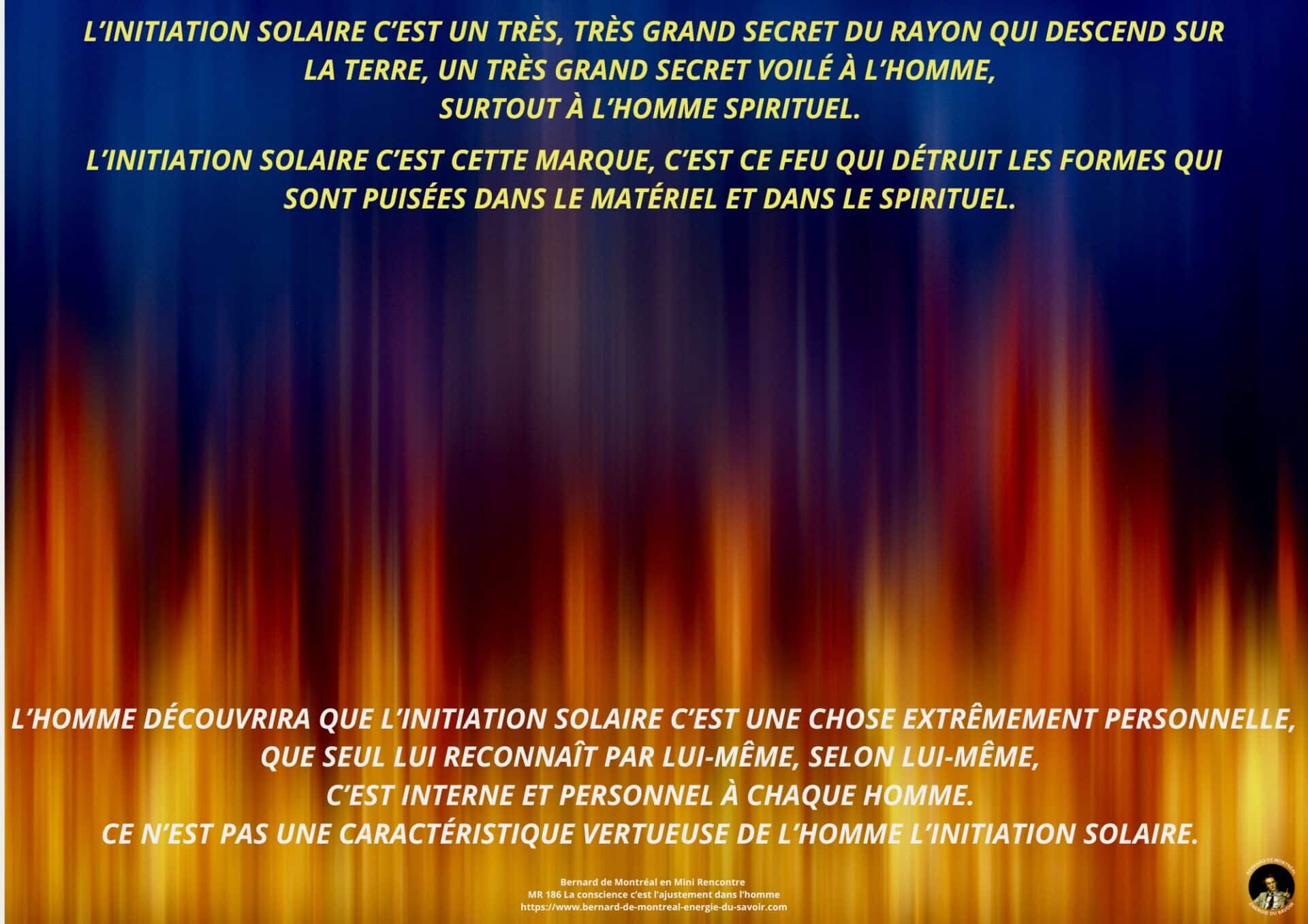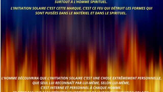 Il est précisé que l’initiation solaire ne relève ni d’un enseignement ni d’une croyance. Elle correspond à un processus vibratoire et personnel, vécu directement dans la matière. Cette initiation ne peut être transmise ni imitée ; elle résulte de l’ajustement progressif du rayon dans l’homme.