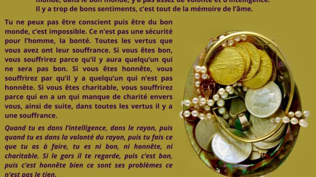 Une critique est également formulée à l’égard de la spiritualité traditionnelle et des vertus valorisées socialement, telles que la bonté. Ces vertus sont présentées comme des expressions de la mémoire de l’âme, liées à des conditionnements anciens, et non comme des manifestations d’une intelligence réelle et active.