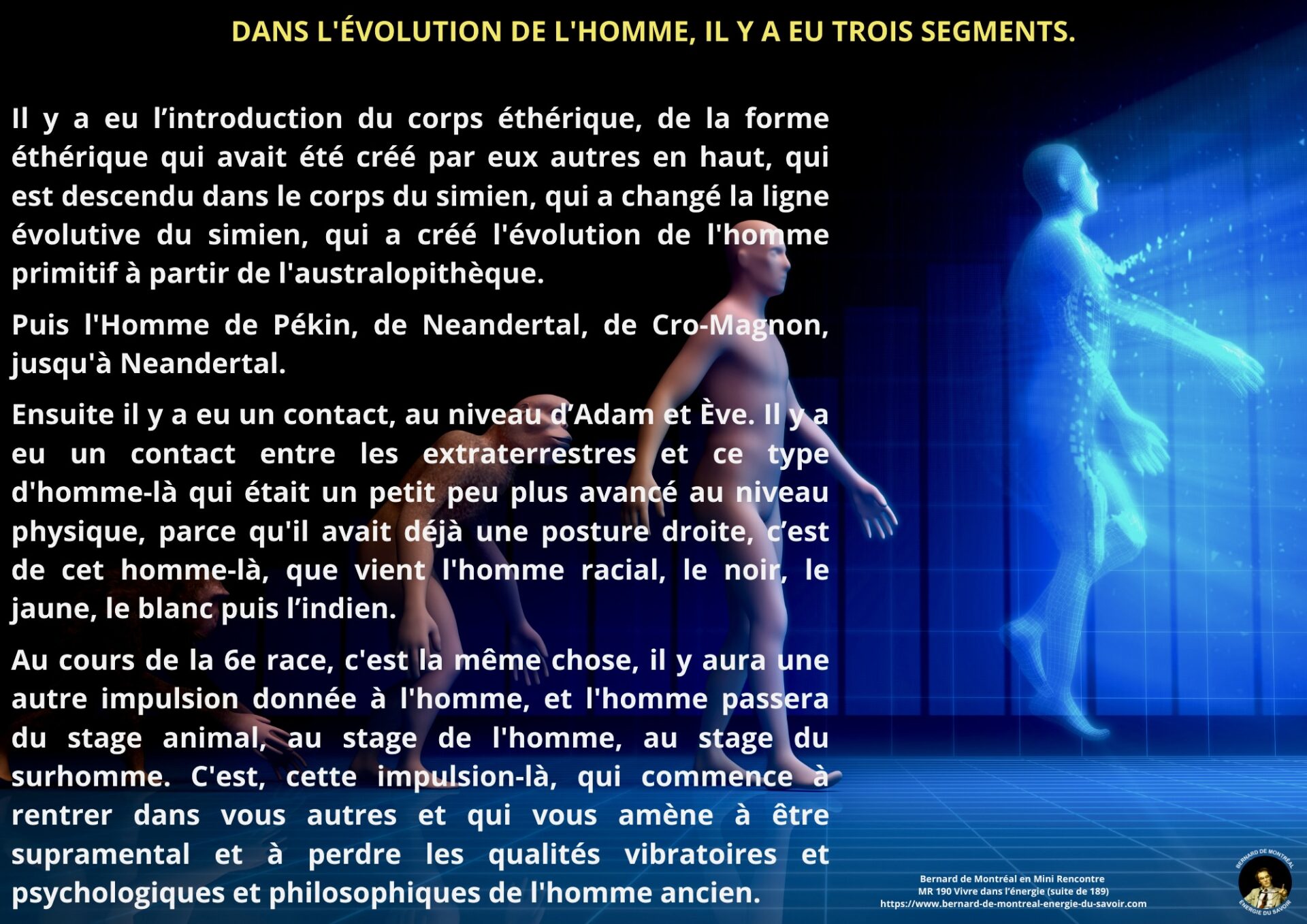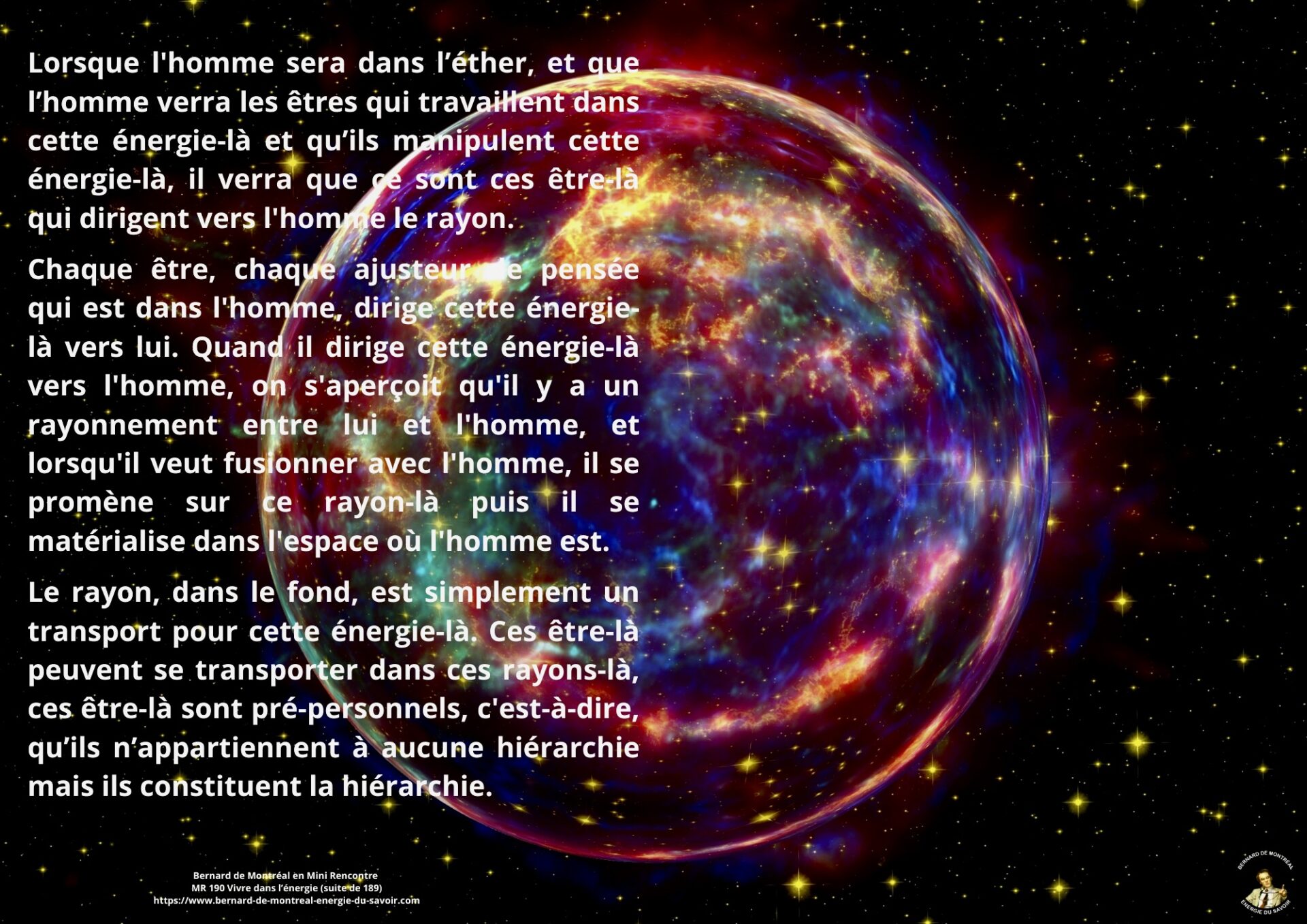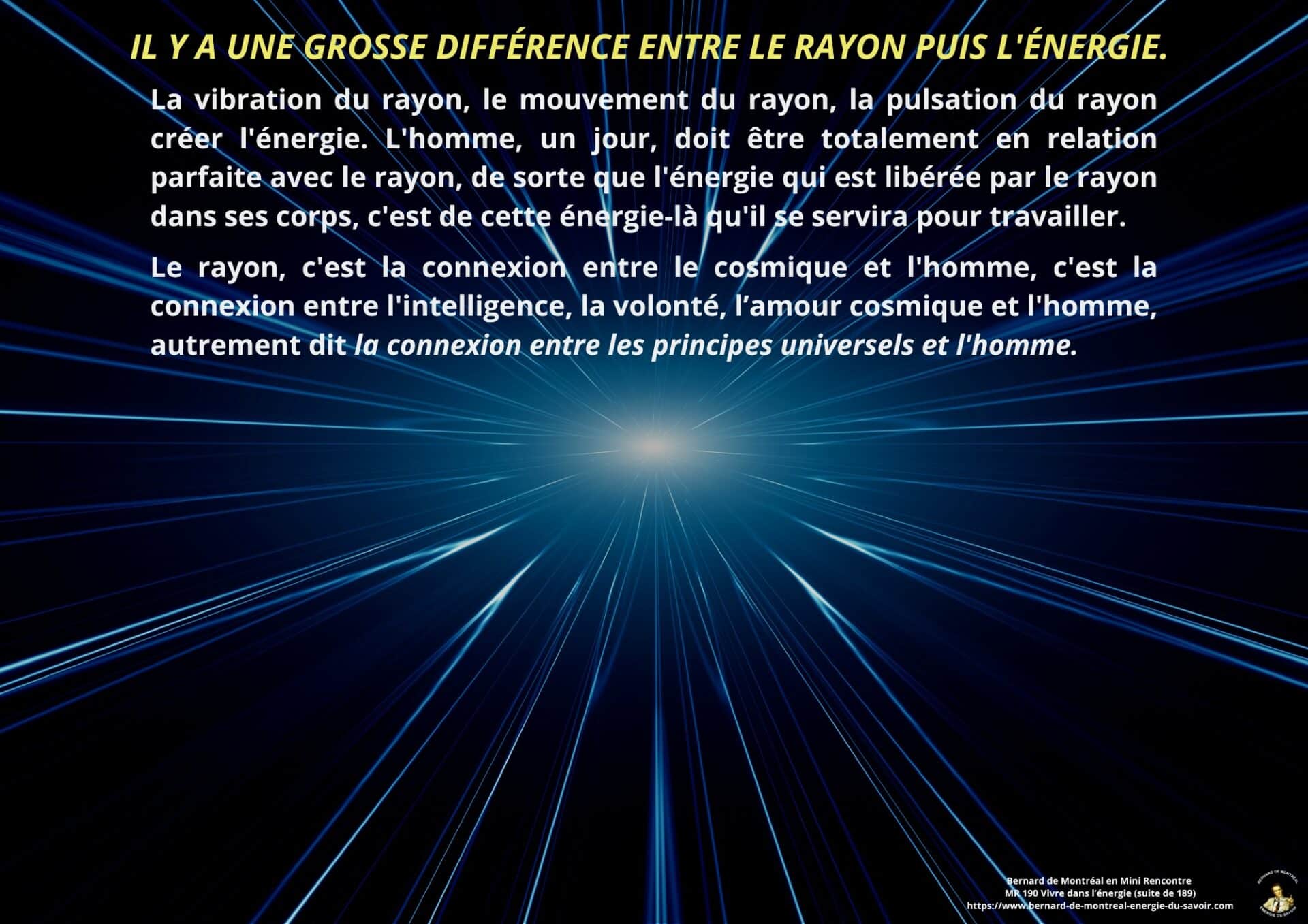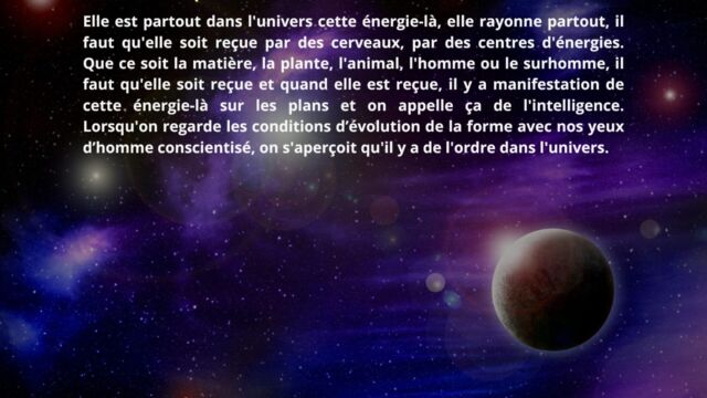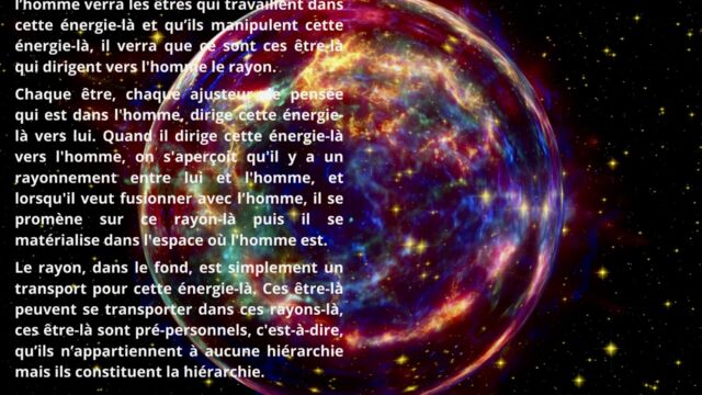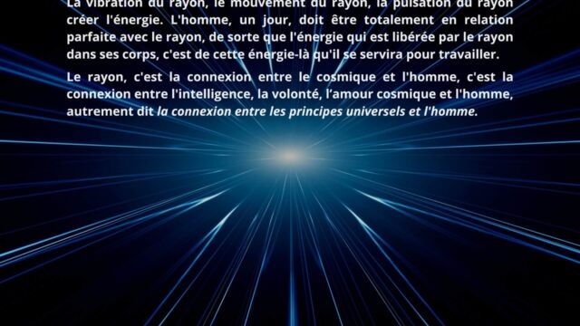 L’intelligence cosmique et l’énergie du rayon sont alors mises en avant comme principes fondamentaux de l’évolution humaine. Vivre dans l’énergie implique d’actualiser le rayon dans la matière, plutôt que de nourrir des états passionnels hérités du passé.