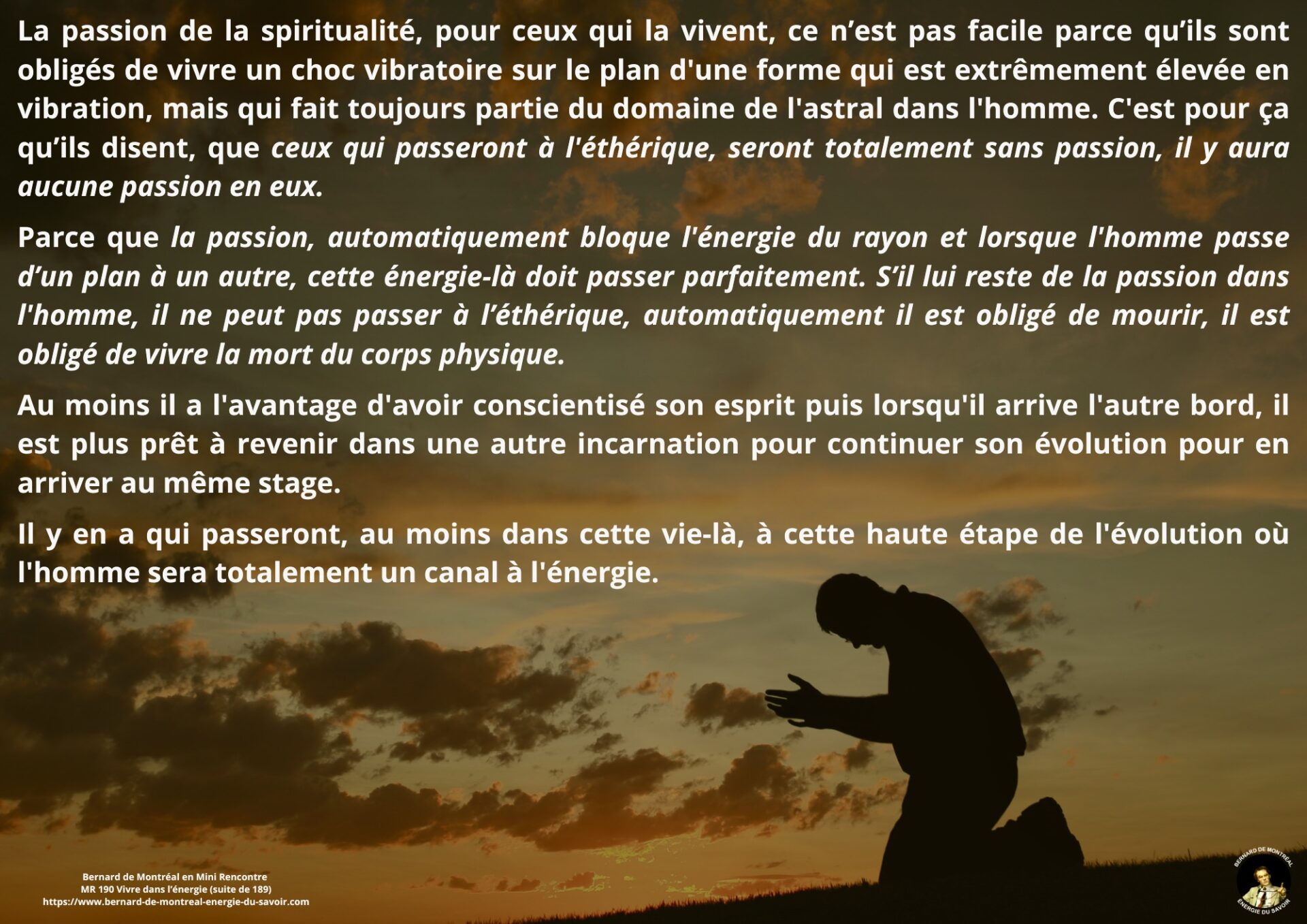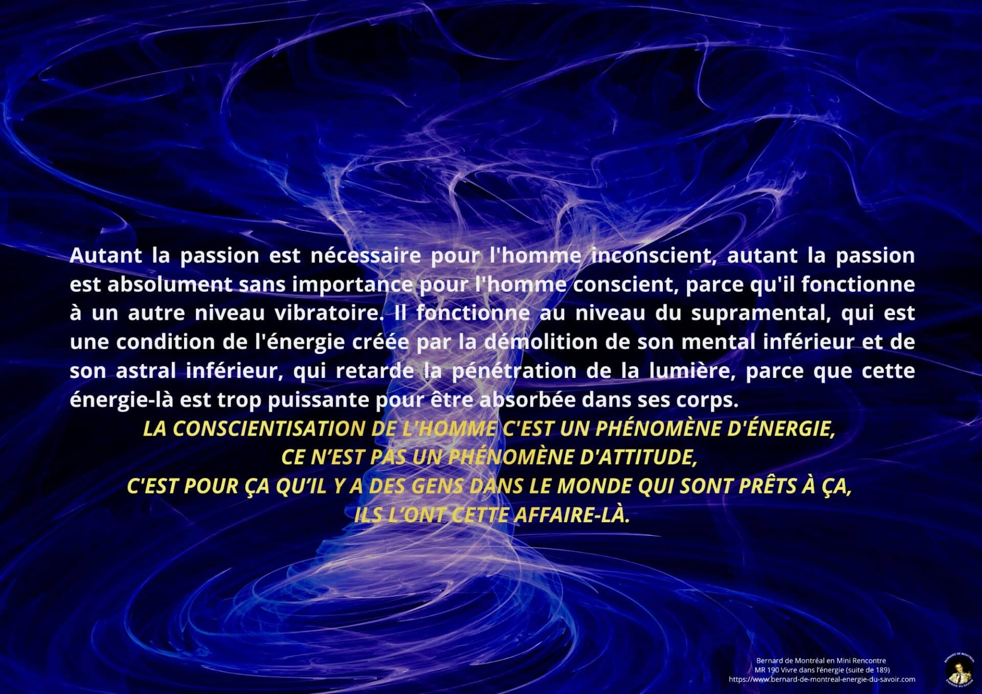 Cette Mini Rencontre prolonge la réflexion sur la passion en introduisant la notion de vie dans l’énergie. Le propos vise à montrer que l’évolution de la conscience passe par une stabilisation énergétique plutôt que par une multiplication d’actions ou d’élans passionnels.