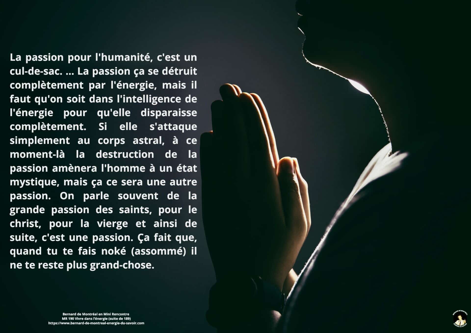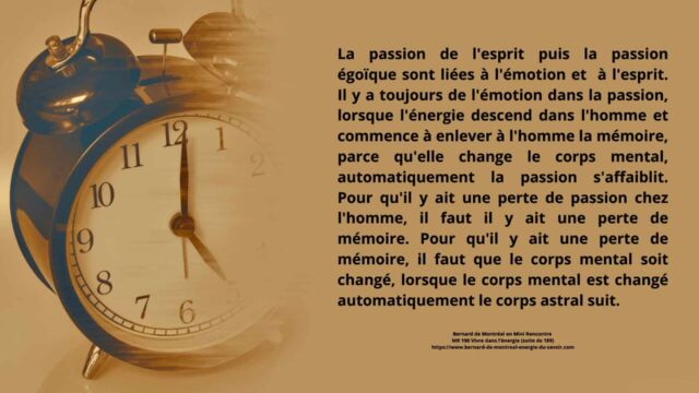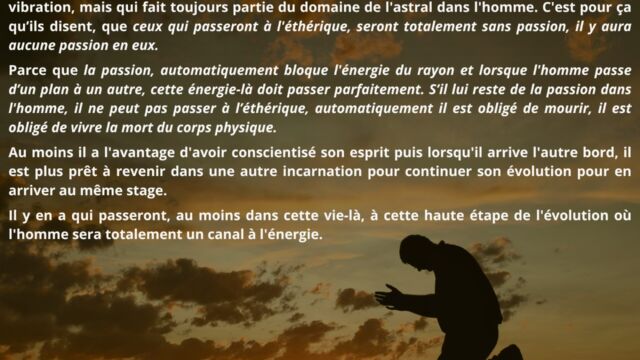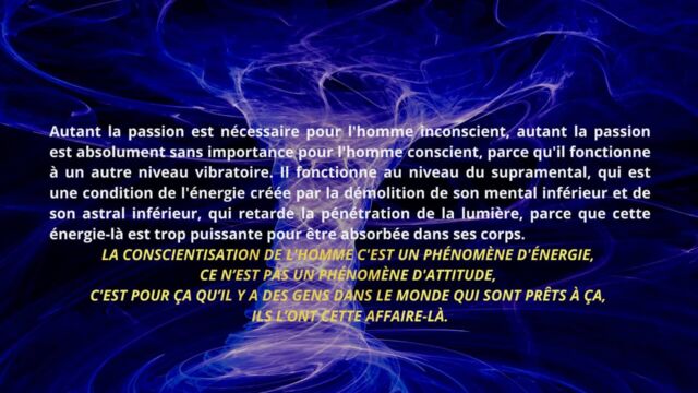 Il est indiqué que la passion est liée à la mémoire de l’âme. Tant que cette mémoire demeure active, l’énergie est captée par des élans affectifs et des répétitions anciennes. Pour accéder à une conscience supérieure, cette passion doit être dissoute, non par répression, mais par transformation énergétique.