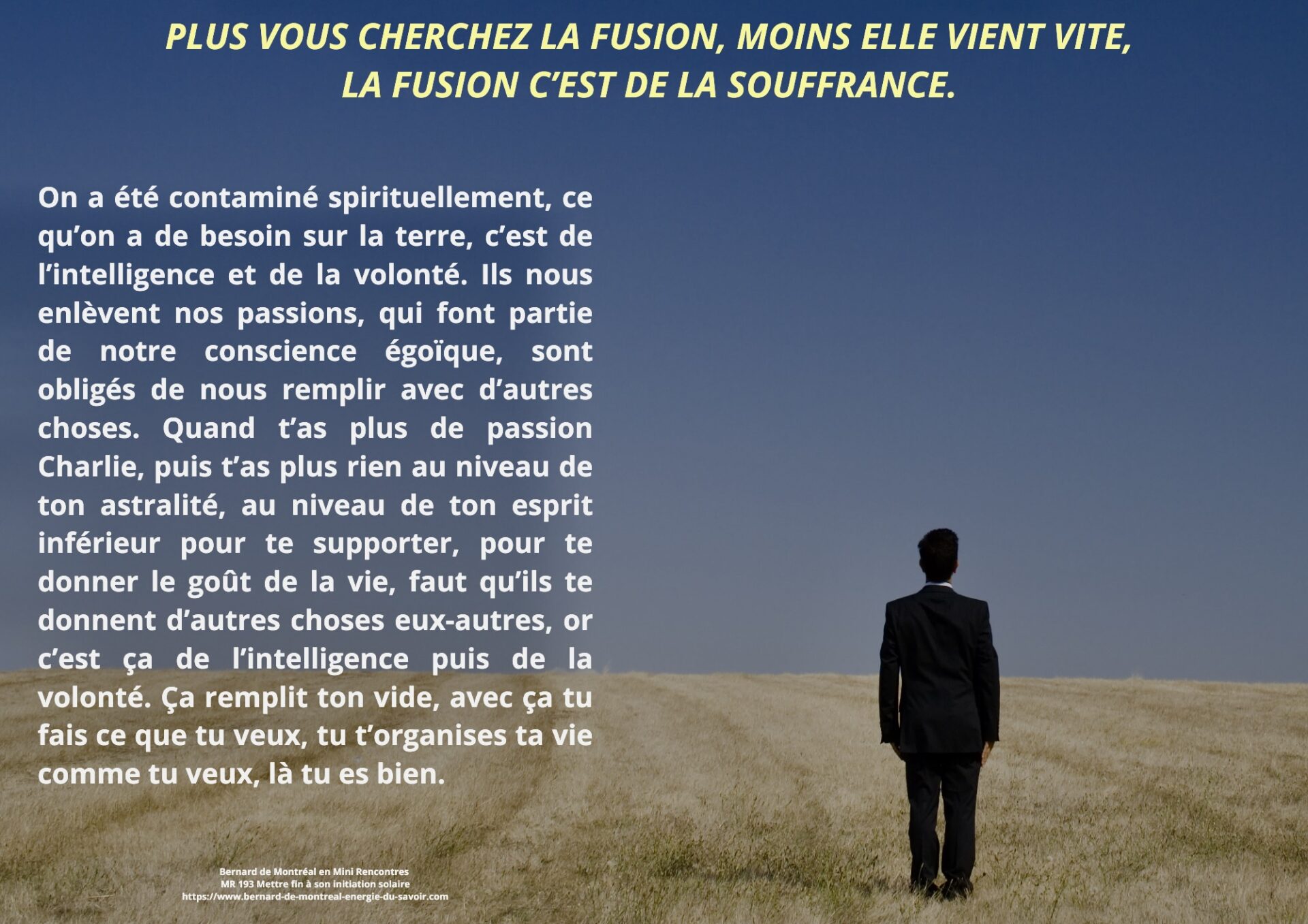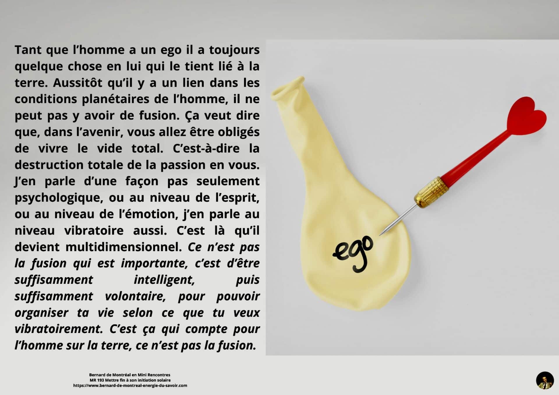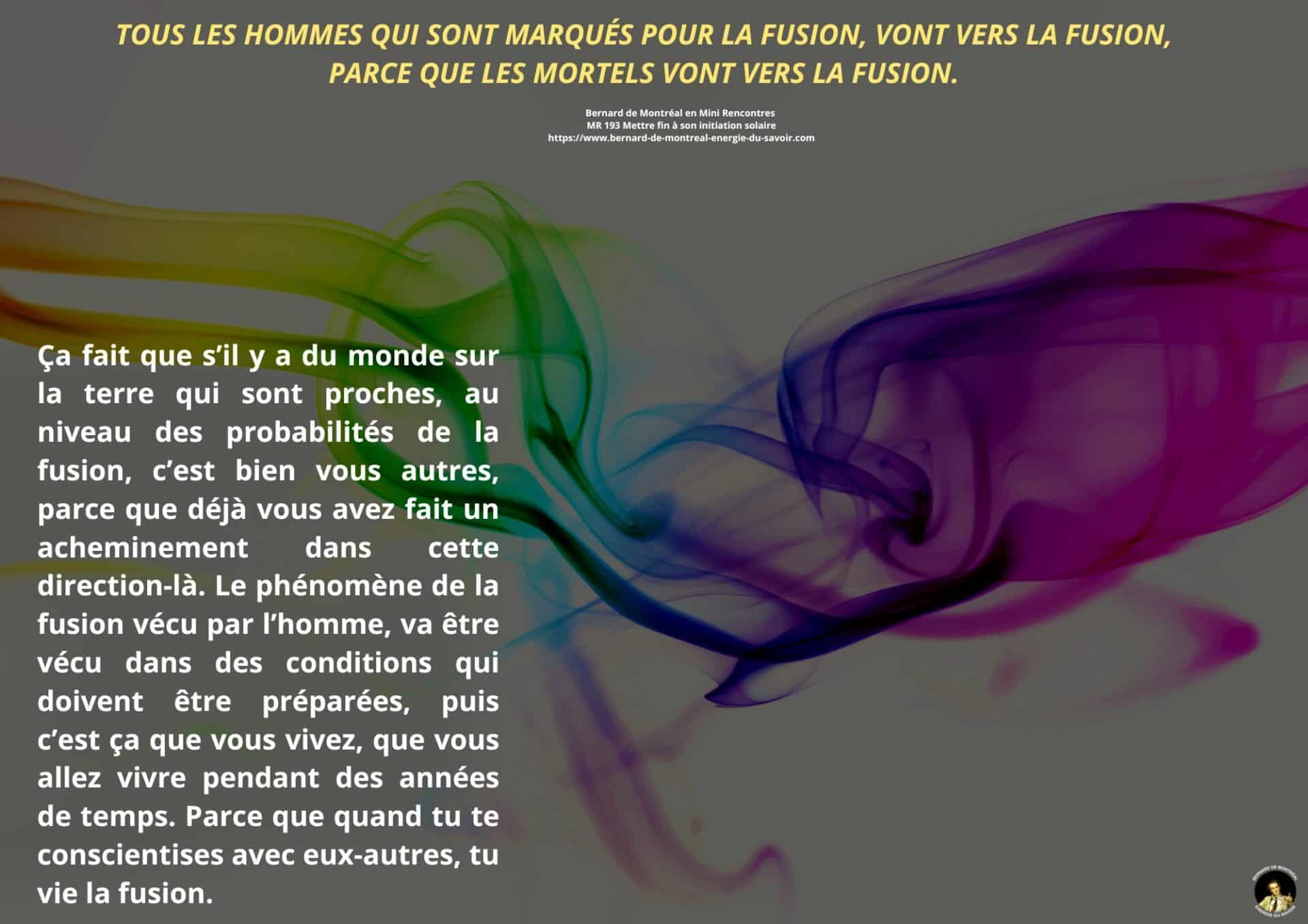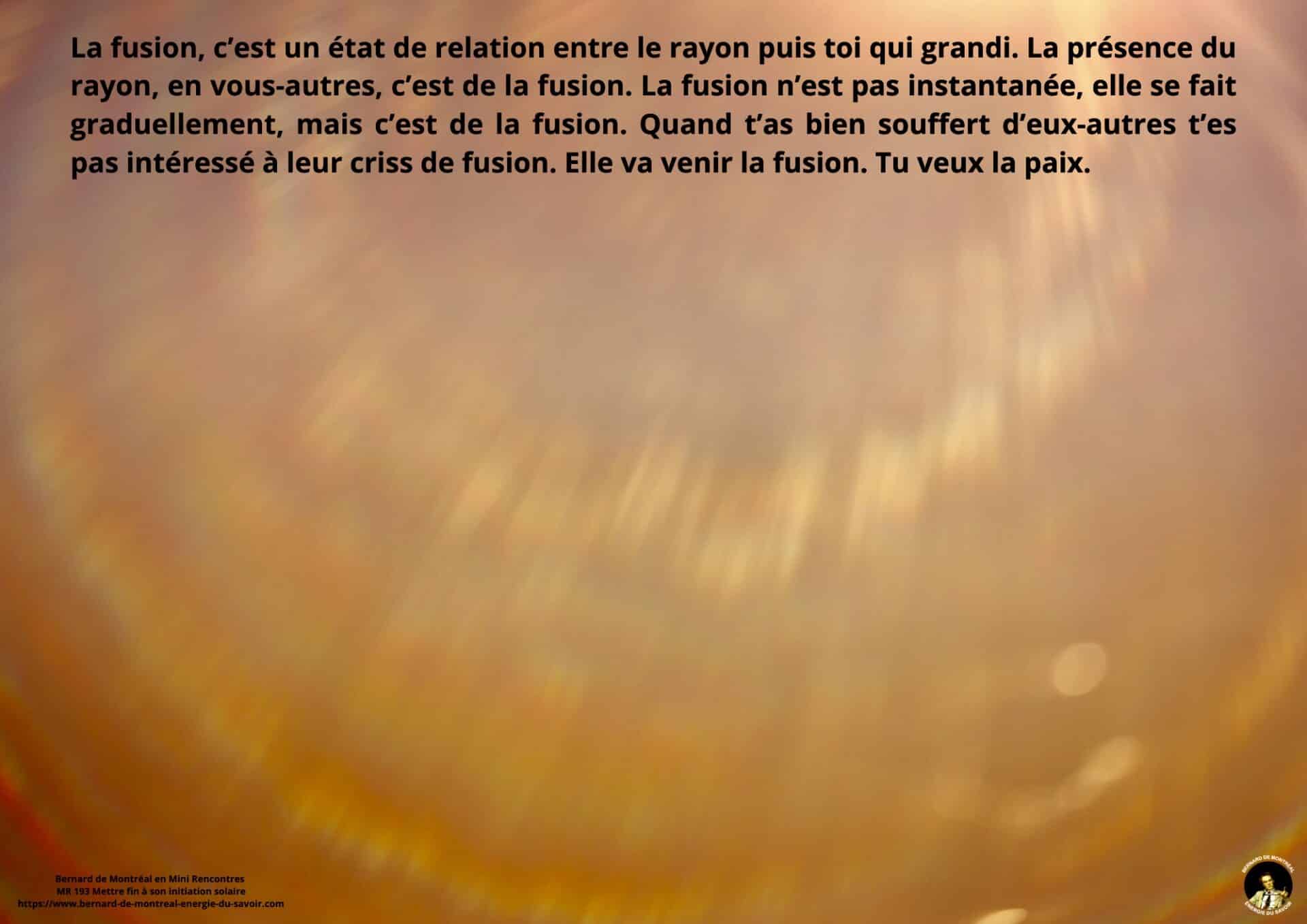 Il est précisé que la fusion ne se provoque pas. Elle se produit naturellement et graduellement lorsque l’homme vit dans l’intelligence et la volonté. À mesure que ces forces s’installent, les passions et les formes égoïques se détruisent d’elles-mêmes.