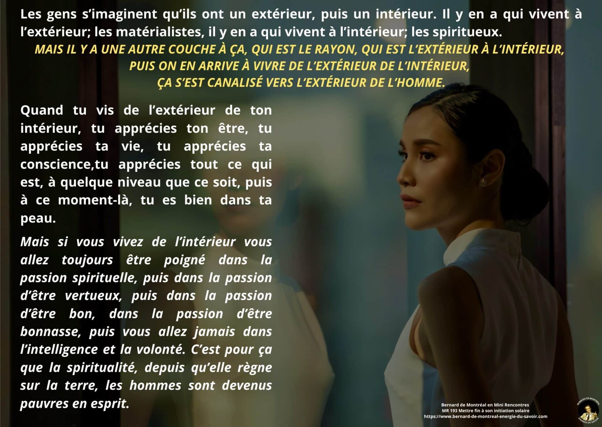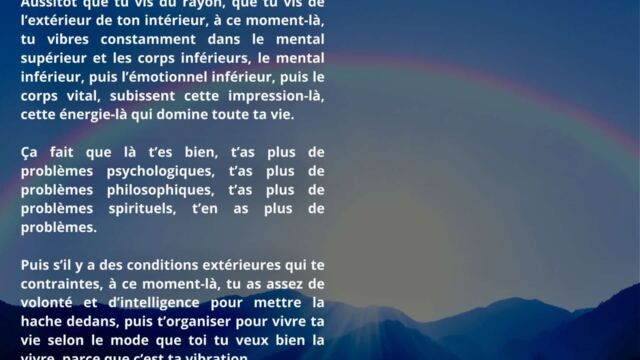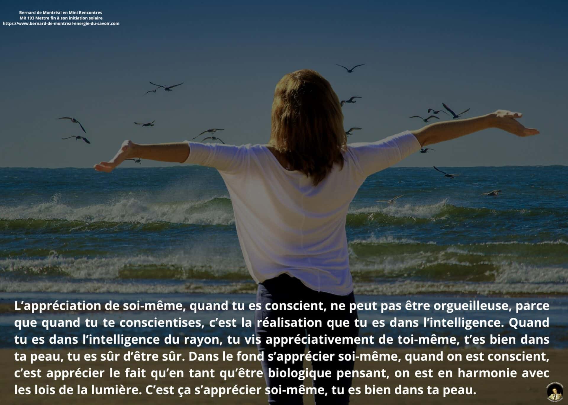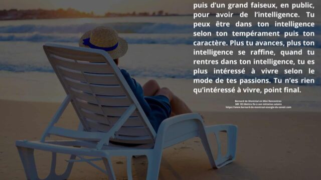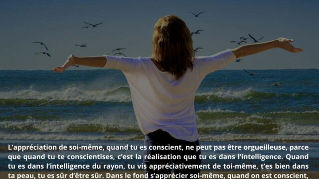 Il est également souligné que s’apprécier soi-même constitue un facteur d’équilibre. Cette appréciation ne relève pas de l’orgueil, mais d’une reconnaissance lucide de sa propre intelligence. Vivre en harmonie avec les lois de la lumière devient alors possible sans effort ni tension intérieure.