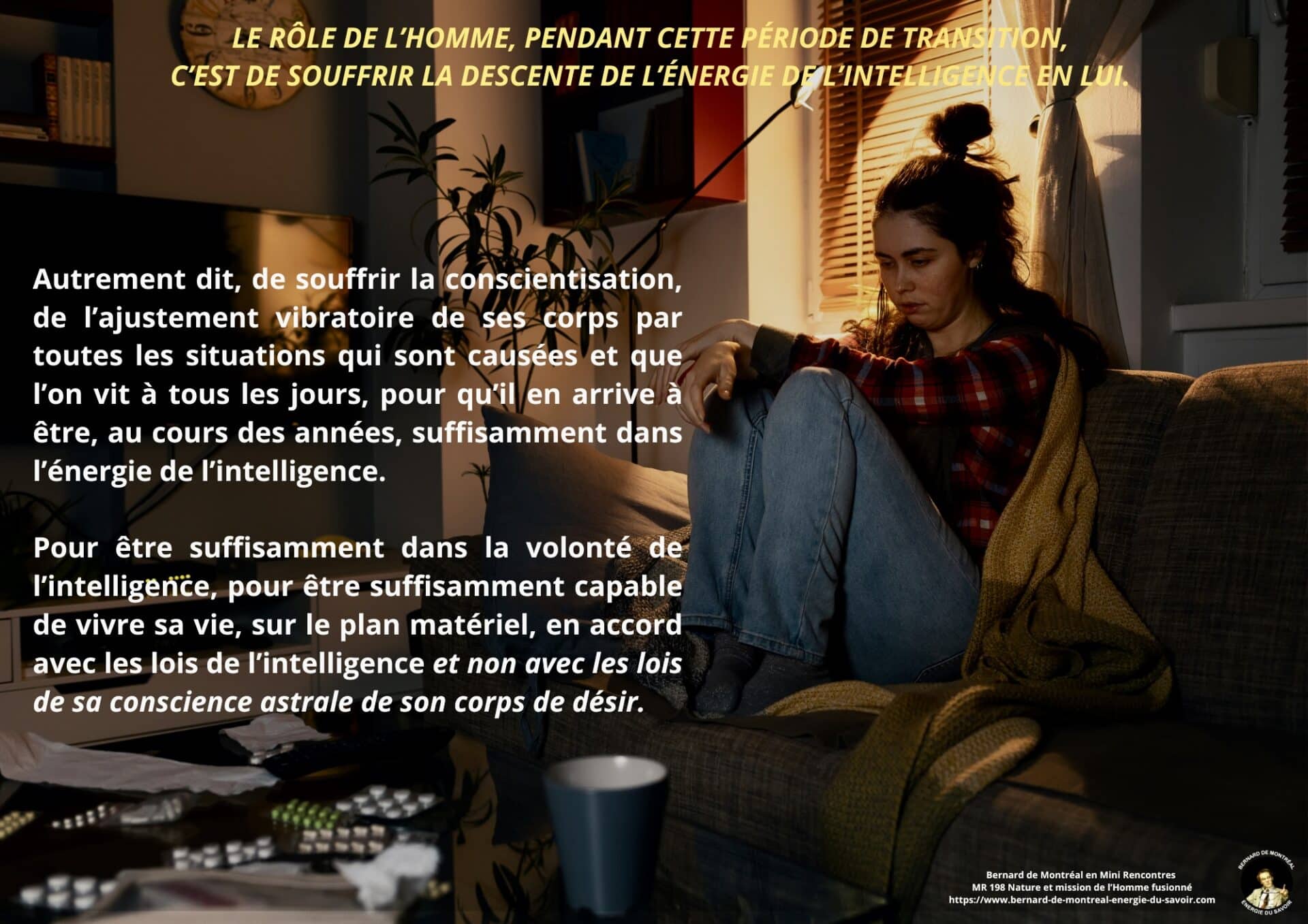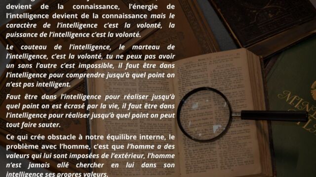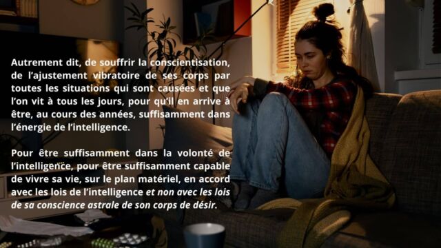 Dans ce passage, il est indiqué que l’homme ne peut résoudre par lui-même la quête de l’invisible. L’intelligence ne se discute pas et ne se conceptualise pas. Elle s’impose par la descente de son énergie, que l’homme doit supporter et intégrer, souvent au prix d’une souffrance transformatrice.