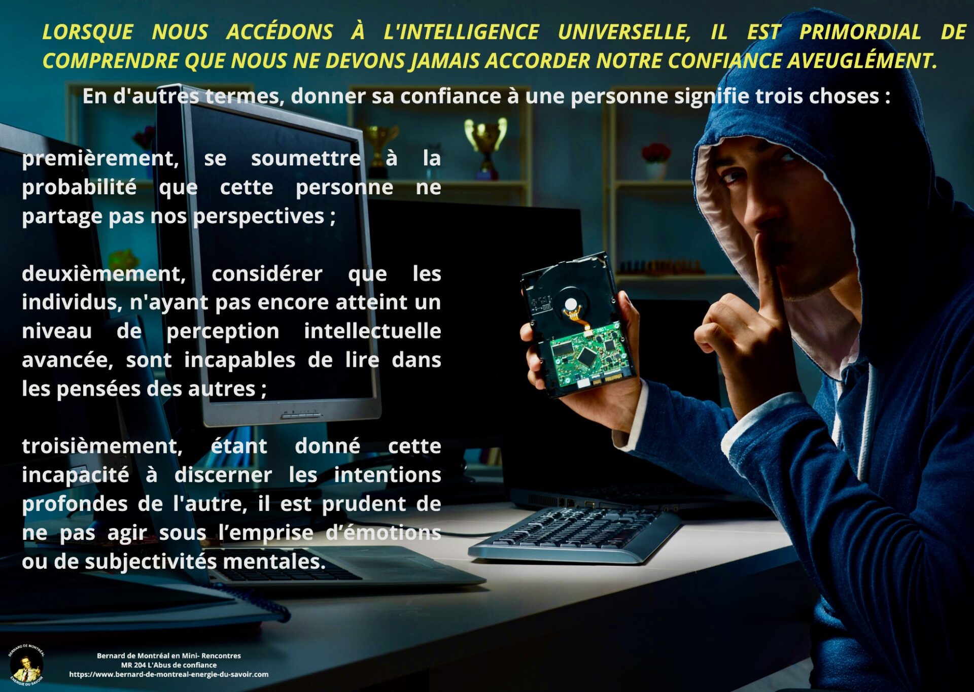 L’accès à une intelligence plus lucide constitue le principal facteur de protection contre ce type d’abus, non par durcissement psychologique, mais par ajustement vibratoire. Lorsqu’un être fonctionne à partir de cette intelligence, il ne peut ni être abusé ni abuser lui-même de la confiance d’autrui, car ses relations ne reposent plus sur l’émotionnel ou la projection, mais sur une perception juste des intentions en présence.