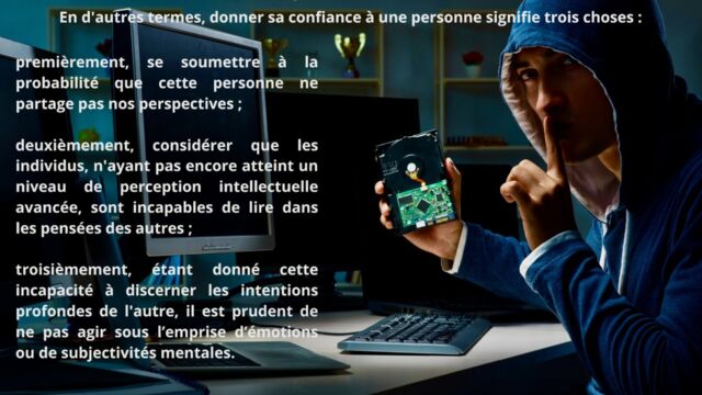 Il est enfin rappelé que la stabilité et la réduction de la souffrance dans la vie humaine passent par un discernement constant dans l’octroi de la confiance, qui ne peut plus être accordée aveuglément.