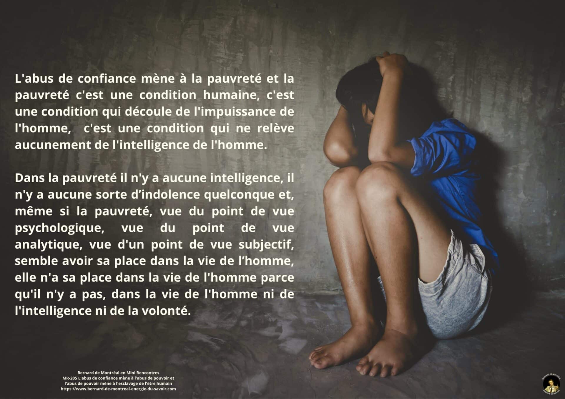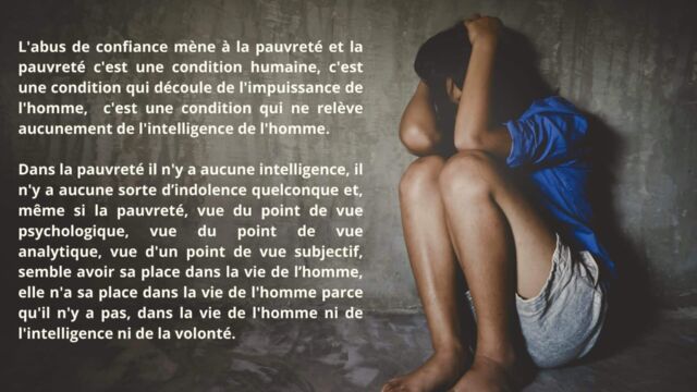 BDM souligne également que la pauvreté matérielle et sociale découle fréquemment de l’abus de confiance, combiné à une absence de volonté et de lucidité dans la gestion des relations humaines. Il est rappelé l’importance de se protéger légalement et de ne pas s’en remettre aveuglément à autrui, non par méfiance systématique, mais par responsabilité envers soi-même.