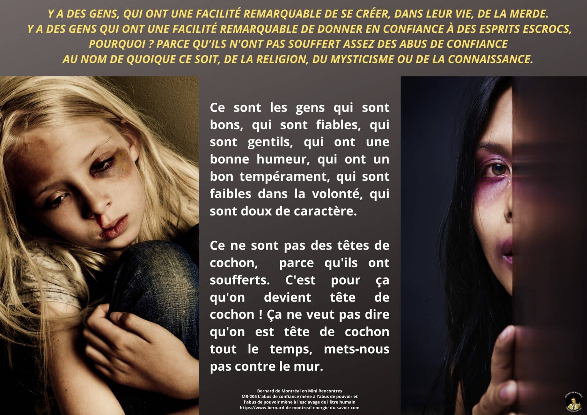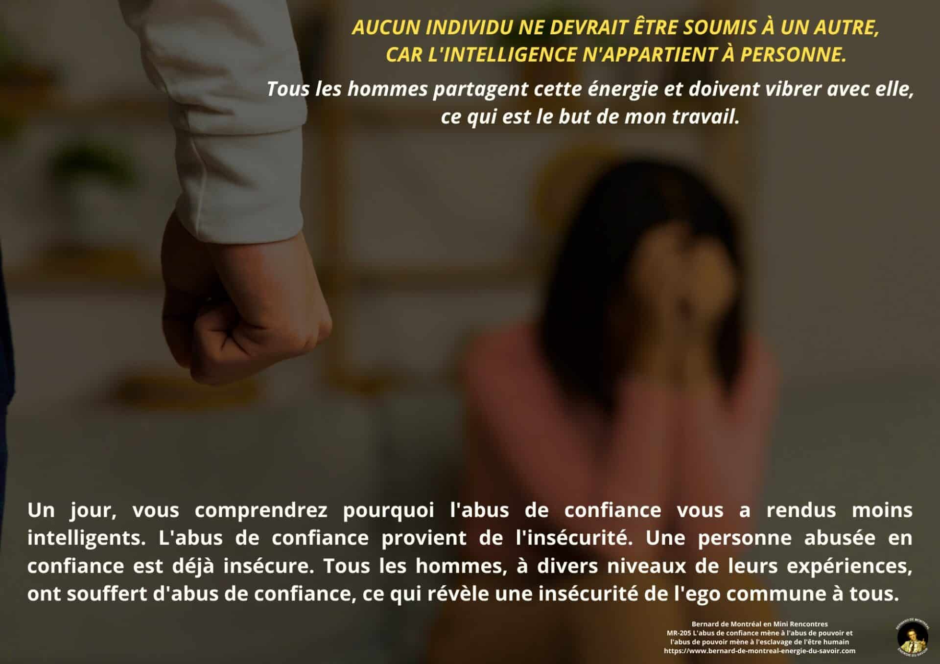 Cette synthèse met en évidence une chaîne de causalité précise reliant l’abus de confiance à l’abus de pouvoir, puis à l’asservissement progressif de l’être humain sur les plans social et individuel.