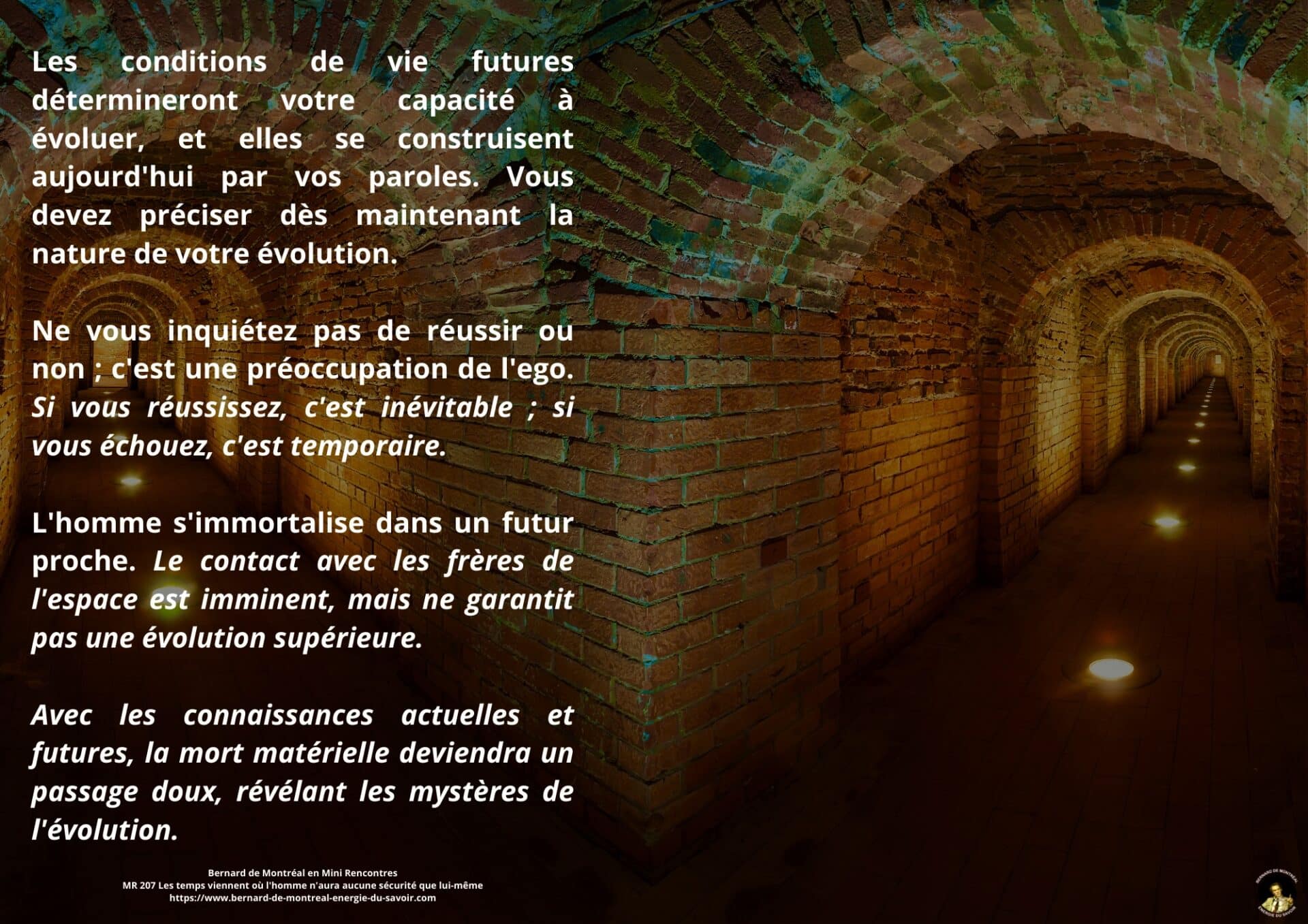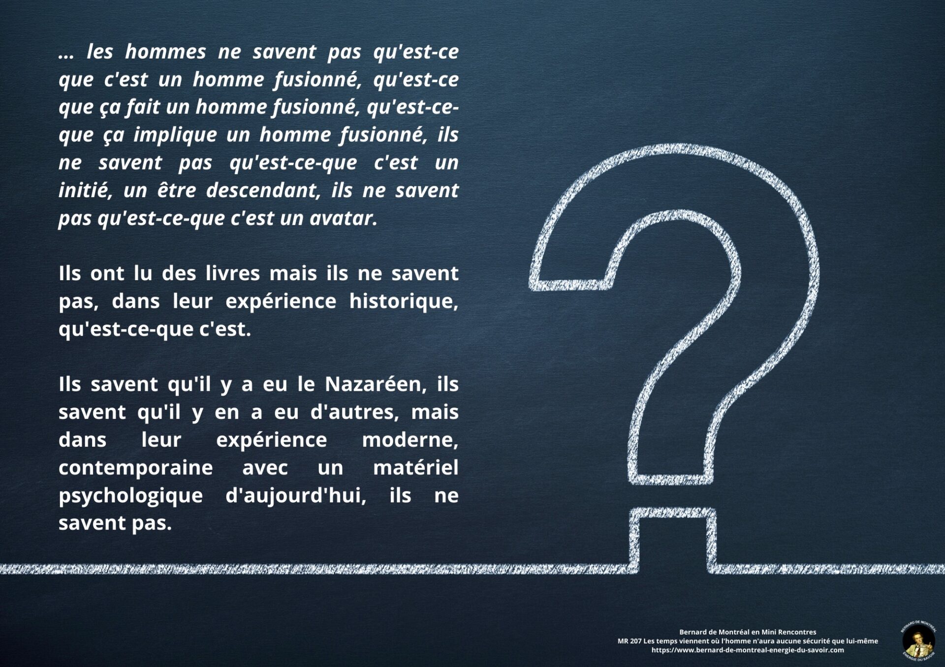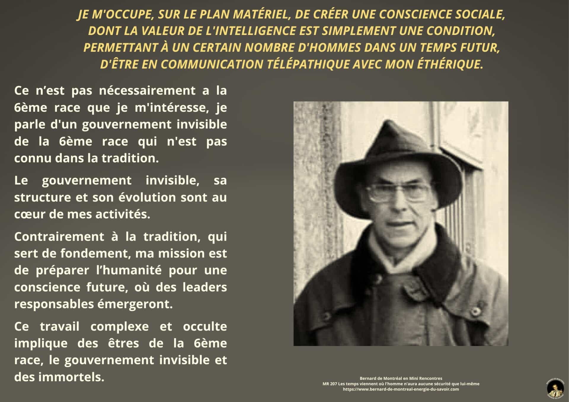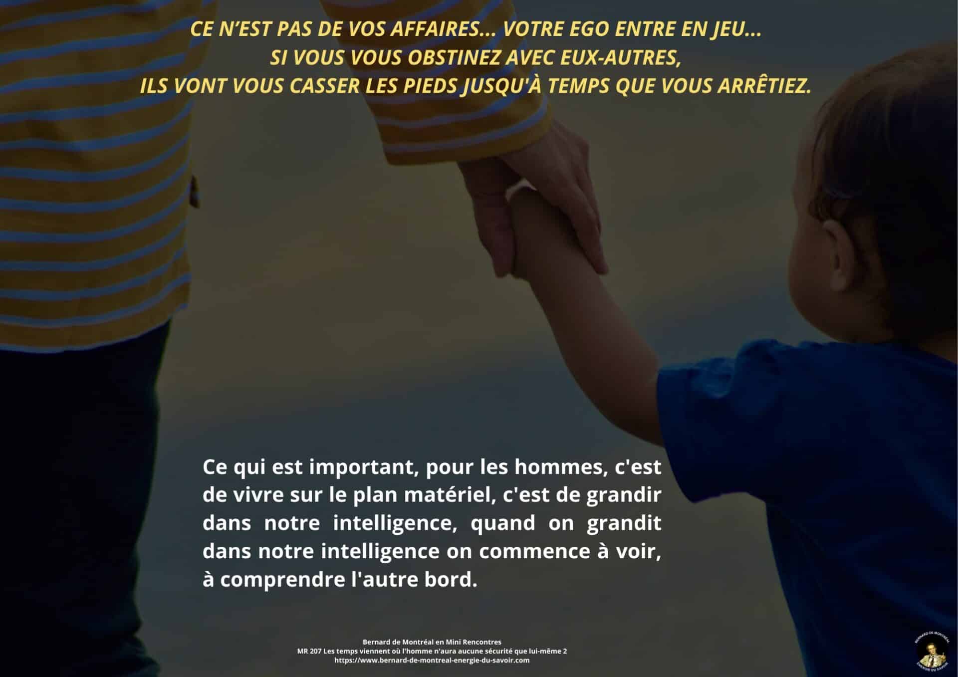 Le texte met en évidence la nécessité de ne pas se laisser piéger par la confiance aveugle accordée aux autres, et souligne l’importance de développer sa propre intelligence afin d’éviter toute forme de déracinement intérieur. Il apparaît que, dans les temps à venir, l’homme ne pourra compter que sur lui-même comme point de stabilité, à condition de ne pas se laisser happer par des projections anxiogènes liées à l’avenir ou à des scénarios occultes.