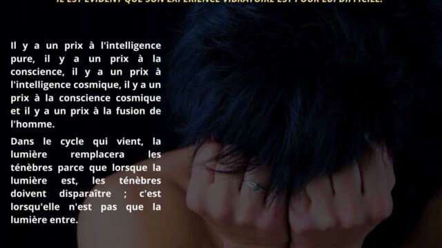 Il est exposé que l’accès à une intelligence pure et à une conscience cosmique comporte un coût réel, assumé par ceux qui ont traversé l’expérience de la fusion. Cette traversée implique une intensification vibratoire difficilement soutenable pour l’homme qui ne fonctionne pas à partir de son intelligence, ce qui accentue les contrastes entre clarté et obscurité.