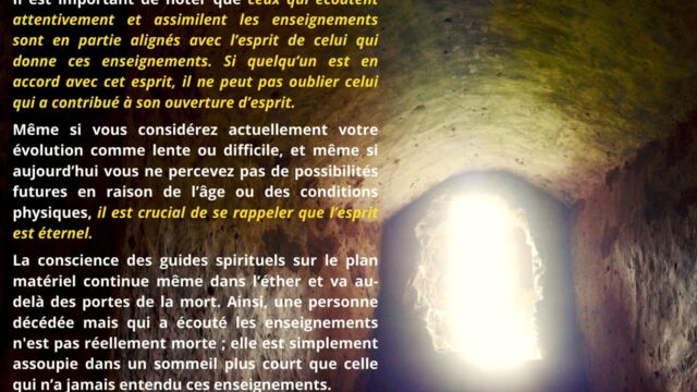 La synthèse insiste enfin sur la fusion avec l’ajusteur de pensée comme point de stabilisation ultime, invitant à vivre dans l’instant présent sans se projeter dans l’avenir. Il est rappelé que l’esprit ne connaît pas de fin et que la continuité de la conscience dépasse les limites de la mort physique.