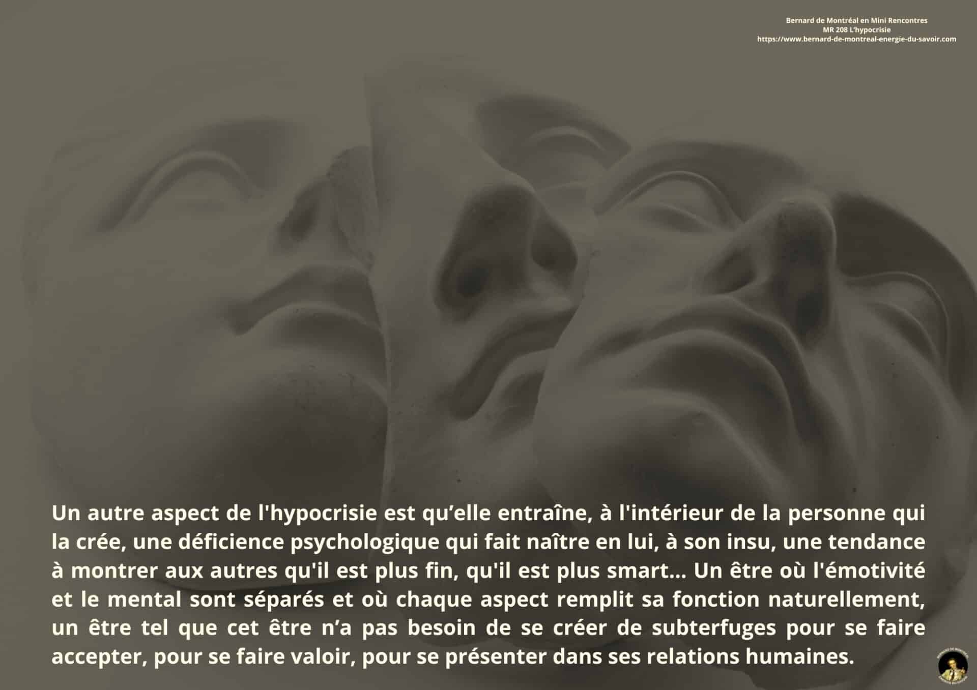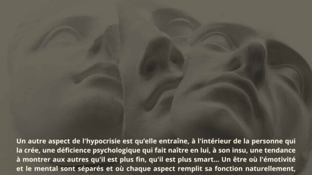 Cette synthèse aborde l’hypocrisie comme une faiblesse majeure de l’esprit humain, issue d’un déséquilibre mental et d’une contamination par l’émotivité, souvent liée à l’insécurité de l’ego.