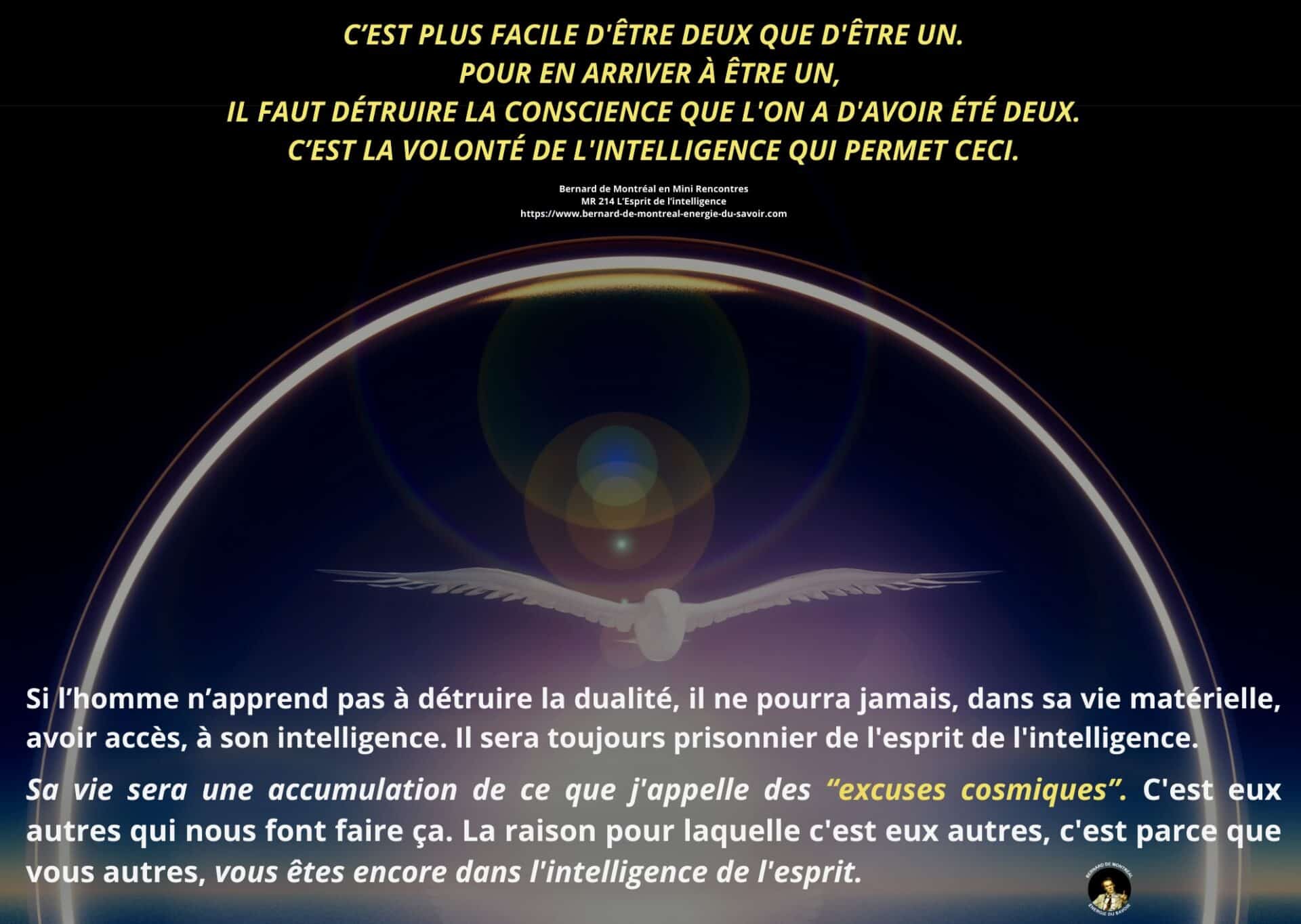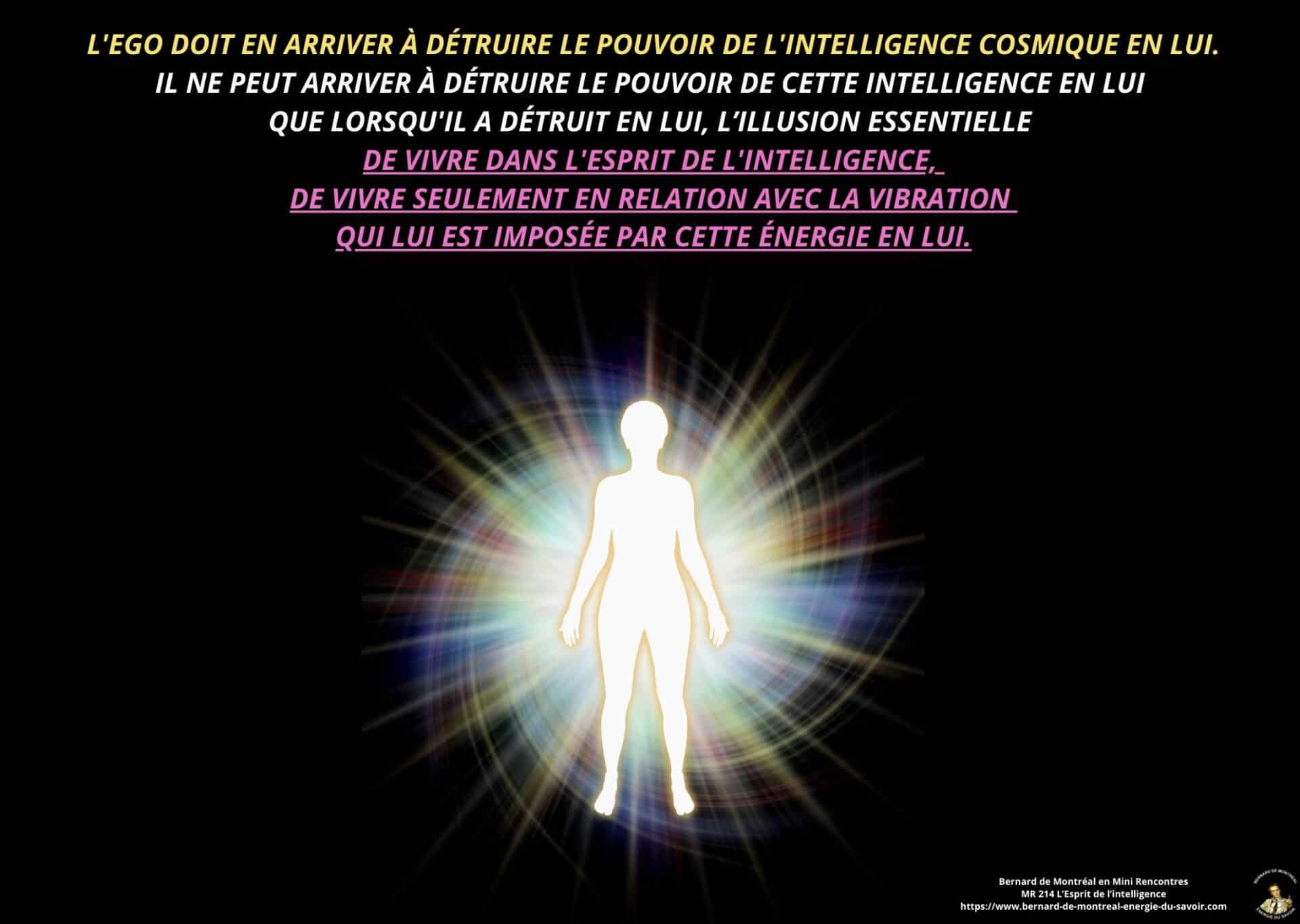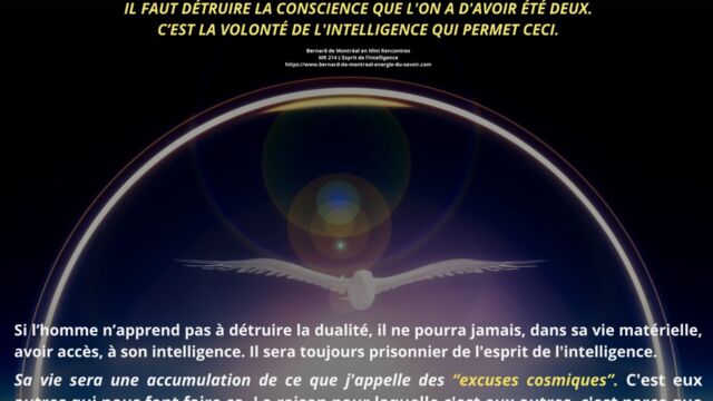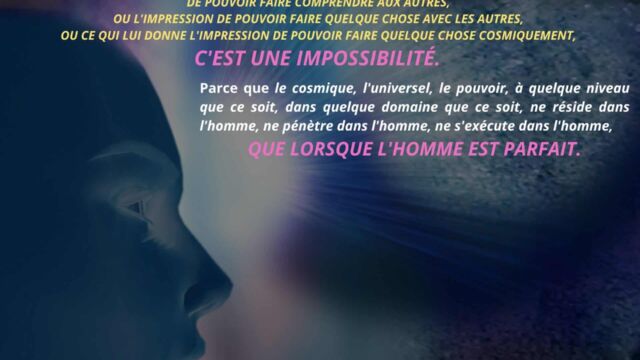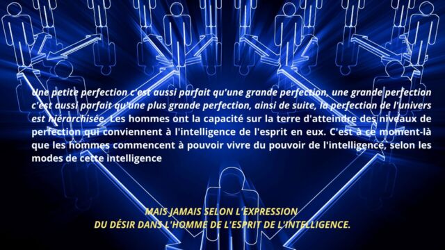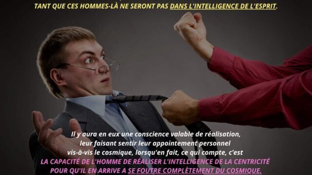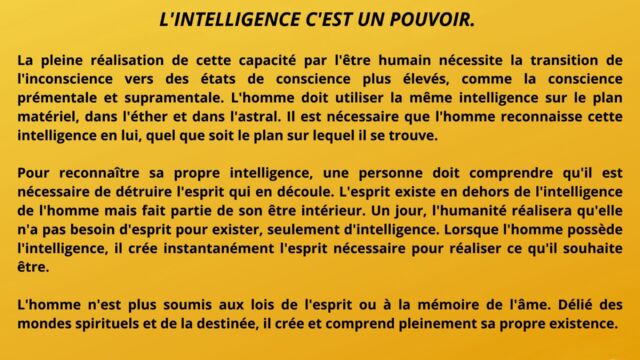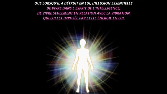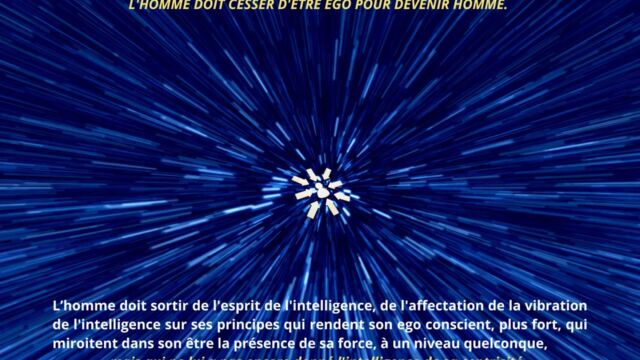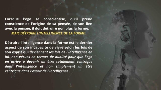 Le texte met en évidence la nécessité pour l’homme d’aller au-delà de cette phase et de détruire en lui le pouvoir exercé par l’intelligence cosmique, non pour la nier, mais pour en intégrer pleinement les principes sans dépendance ni dualité. Cette étape marque le passage d’un état où l’homme est inspiré par l’intelligence à un état où il est centré dans l’intelligence elle-même. Une telle transition libère l’être de la polarité, des tensions intérieures et des oppositions mentales, lui permettant de fonctionner dans une cohérence unifiée.
