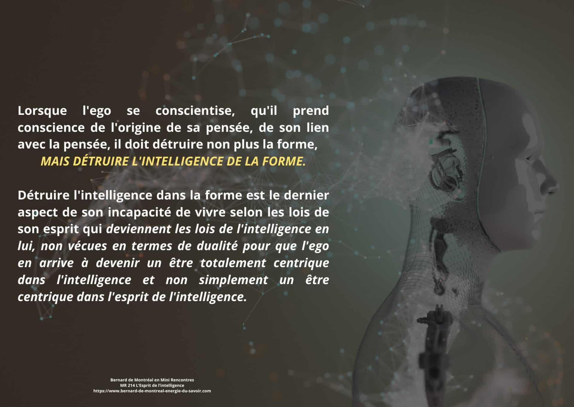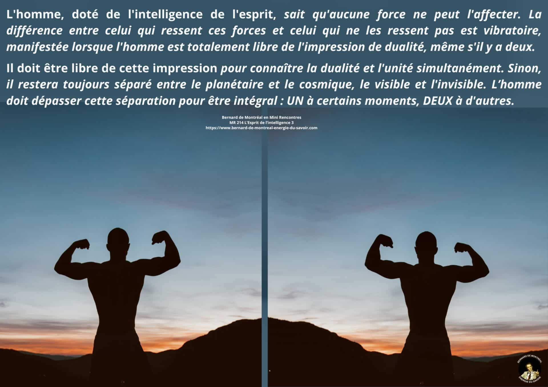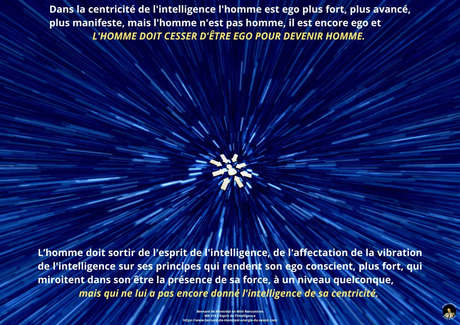 Le texte met en évidence la nécessité pour l’homme d’aller au-delà de cette phase et de détruire en lui le pouvoir exercé par l’intelligence cosmique, non pour la nier, mais pour en intégrer pleinement les principes sans dépendance ni dualité. Cette étape marque le passage d’un état où l’homme est inspiré par l’intelligence à un état où il est centré dans l’intelligence elle-même. Une telle transition libère l’être de la polarité, des tensions intérieures et des oppositions mentales, lui permettant de fonctionner dans une cohérence unifiée.