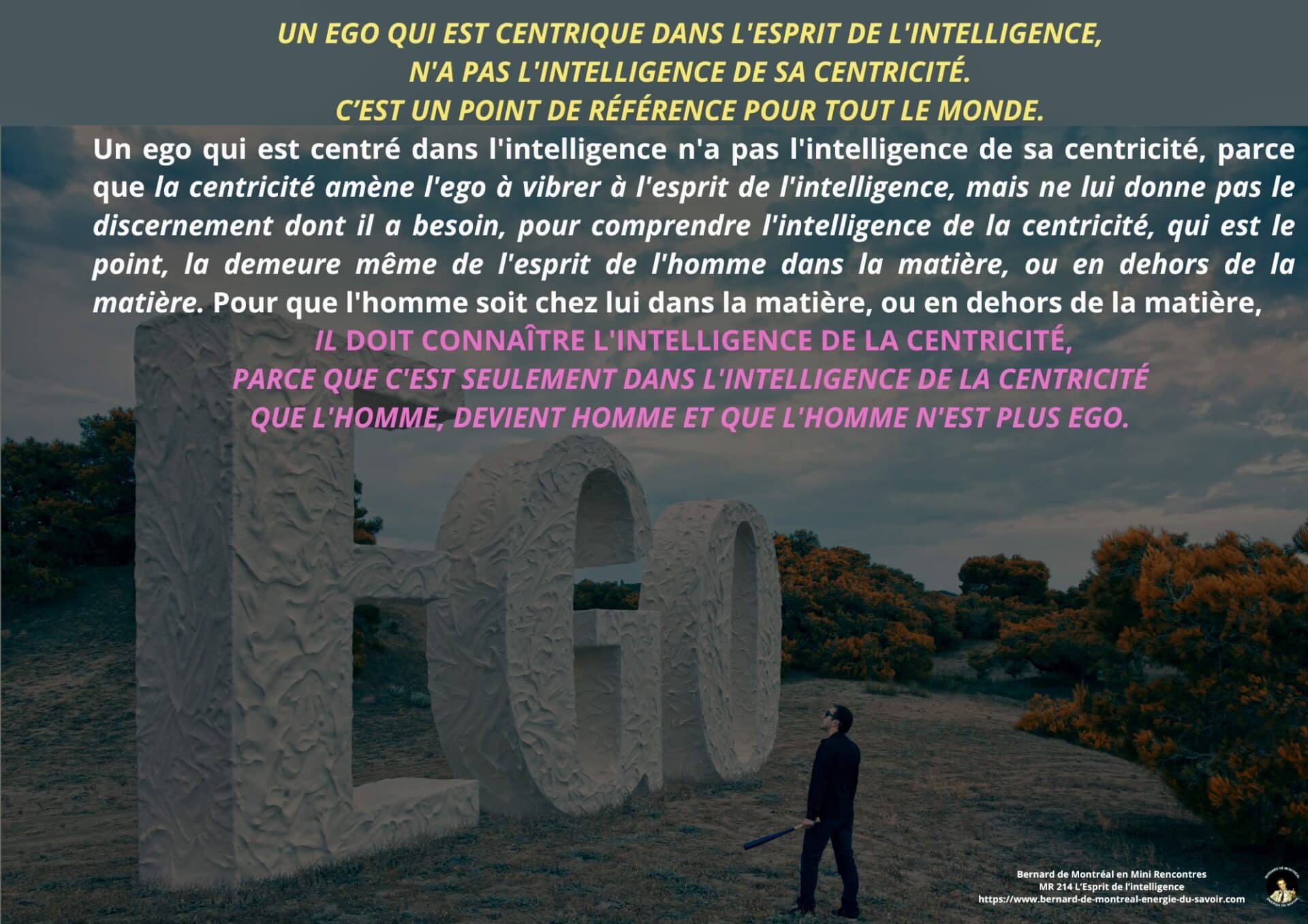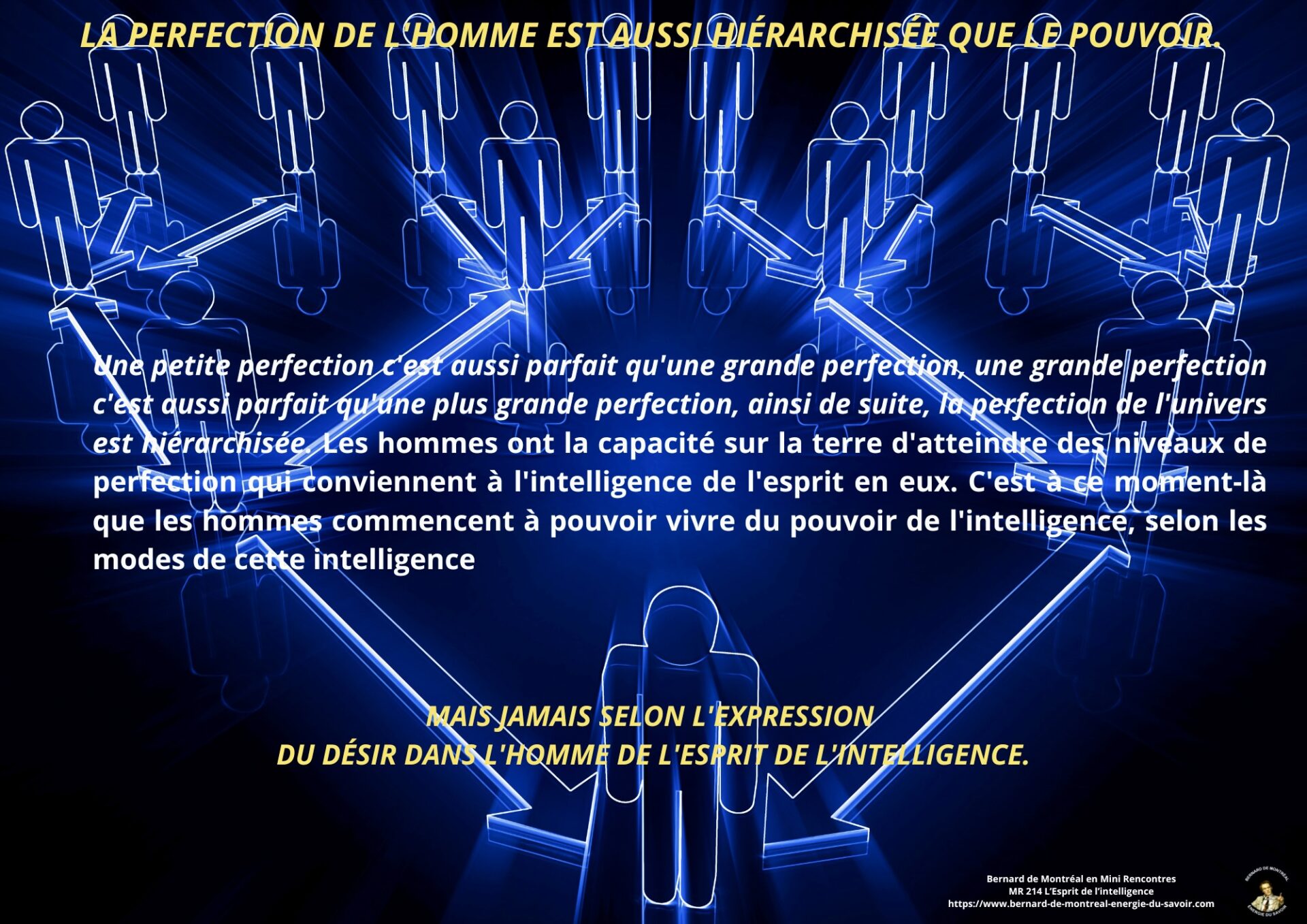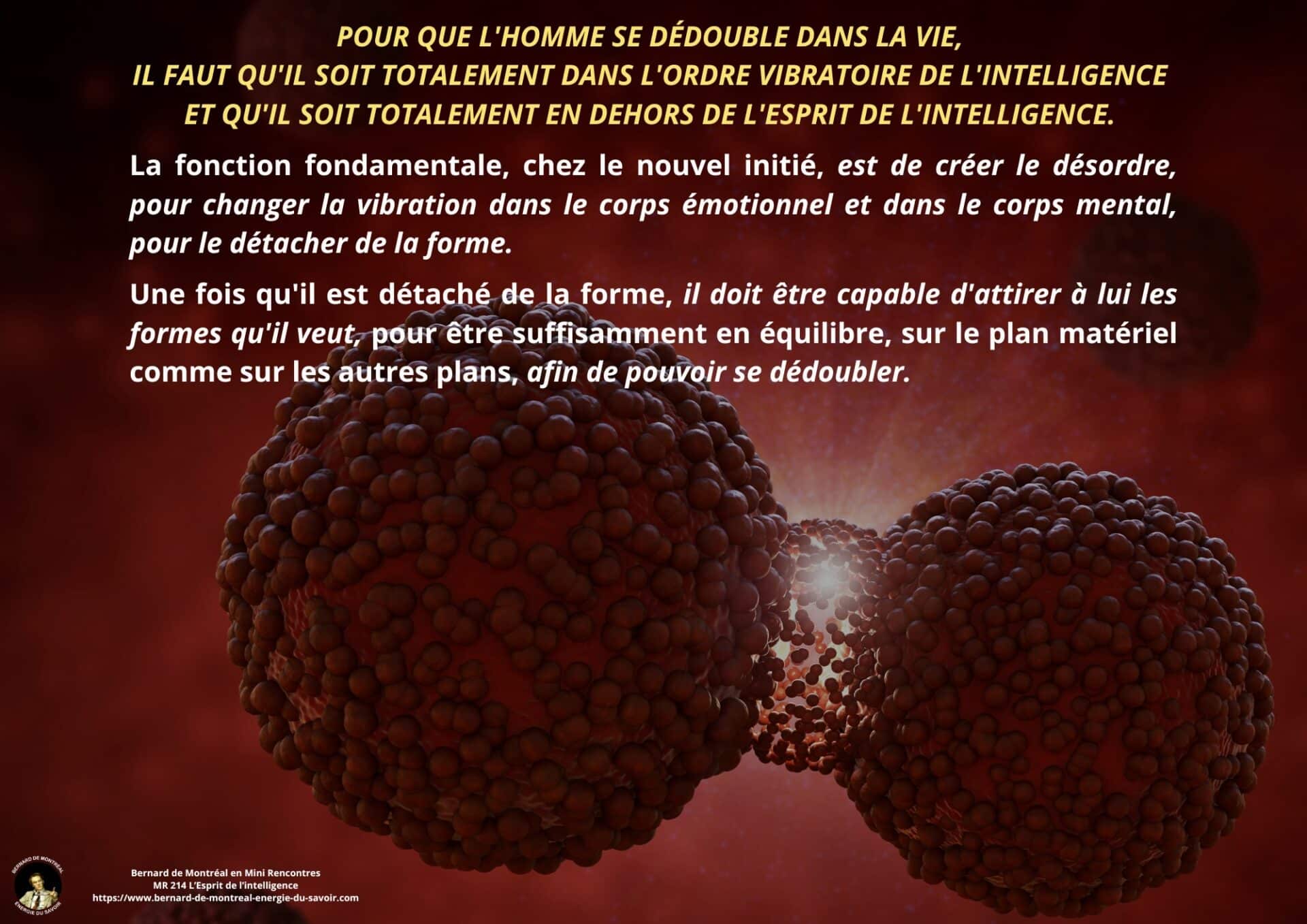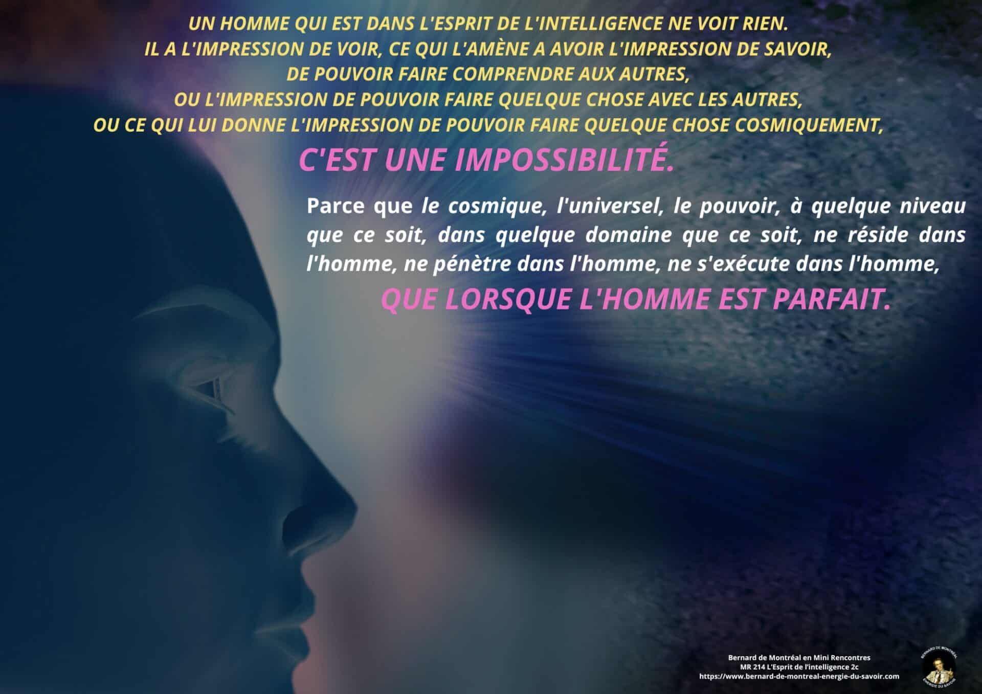 Le texte met en évidence la nécessité pour l’homme d’aller au-delà de cette phase et de détruire en lui le pouvoir exercé par l’intelligence cosmique, non pour la nier, mais pour en intégrer pleinement les principes sans dépendance ni dualité. Cette étape marque le passage d’un état où l’homme est inspiré par l’intelligence à un état où il est centré dans l’intelligence elle-même. Une telle transition libère l’être de la polarité, des tensions intérieures et des oppositions mentales, lui permettant de fonctionner dans une cohérence unifiée.