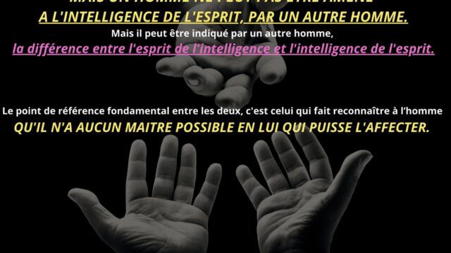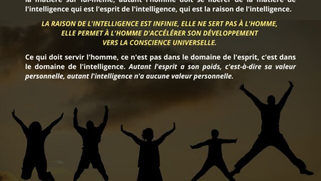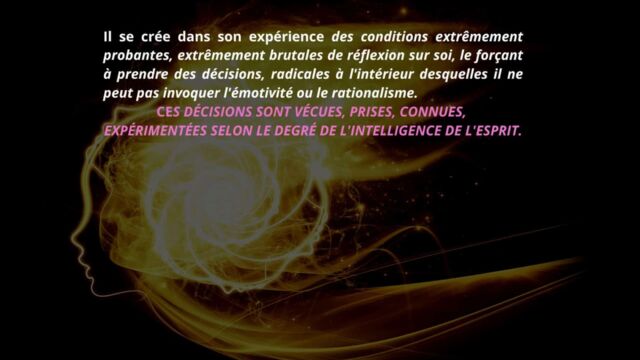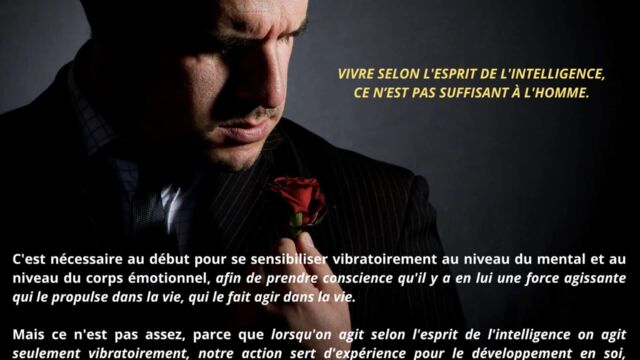 Il est exposé que l’homme commence par apprendre à vivre selon ses vibrations, ce qui le rend progressivement sensible à l’esprit de l’intelligence et lui permet d’en percevoir les mouvements, les impulsions et les ajustements. Toutefois, cette sensibilité demeure insuffisante tant qu’elle n’est pas suivie d’un dépassement plus radical.