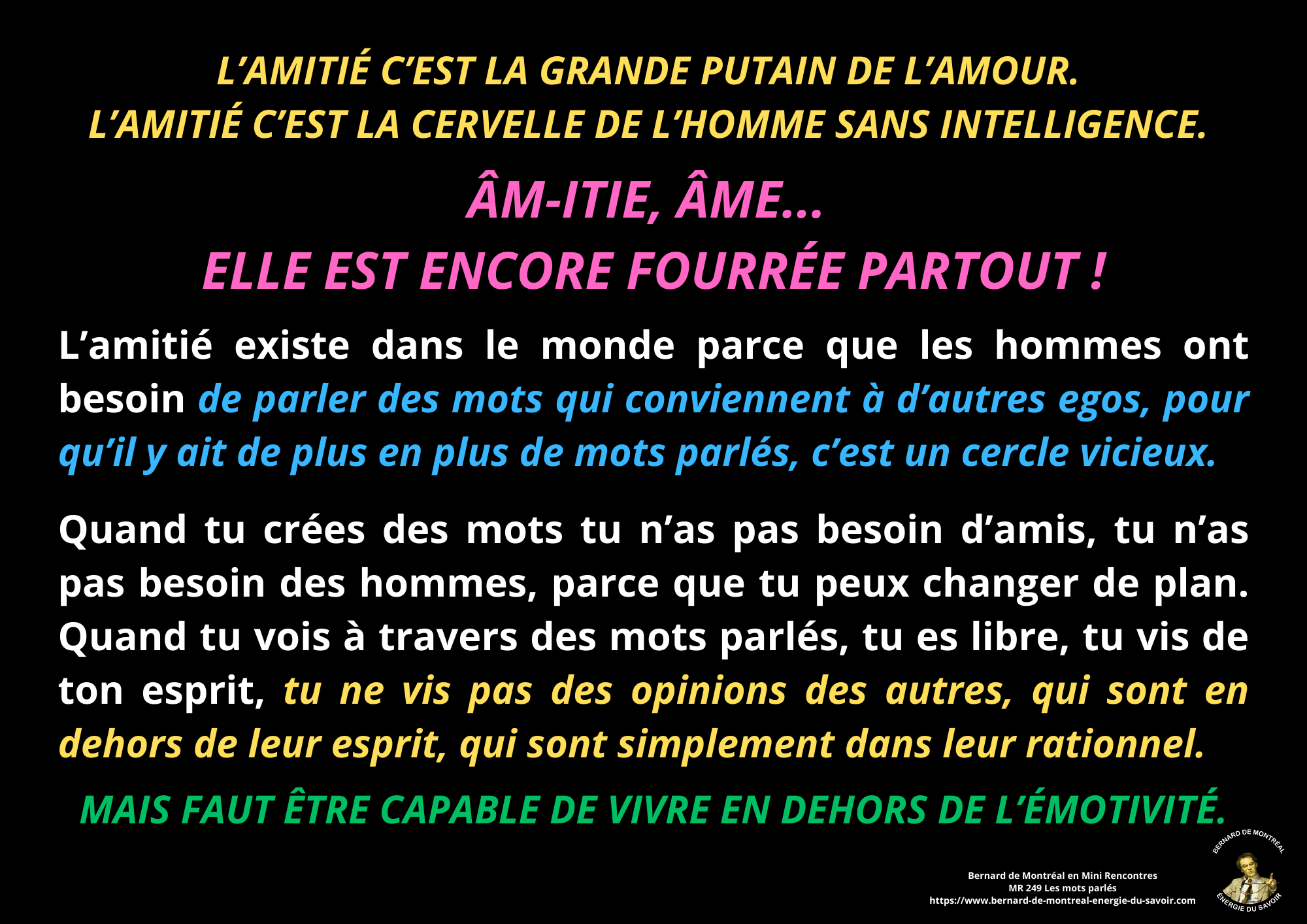 BDM montre que cette création verbale permet de fonctionner sur un plan qui dépasse le matériel et la dépendance aux relations humaines conventionnelles, libérant l’individu du besoin d’approbation ou d’attachement social. Il est souligné que l’accès à cette capacité exige d’avoir d’abord traversé et reconnu la charge émotive contenue dans les mots parlés, afin de la transcender.