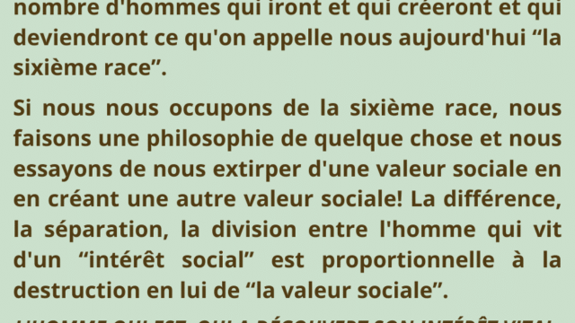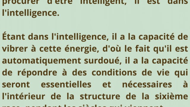 De cette traversée émerge une capacité accrue à structurer une vie matérielle harmonieuse, affranchie des contraintes psychologiques et sociales. Ainsi formé, l’homme de la sixième race développe la lucidité et la puissance créatrice requises pour répondre aux exigences du monde à venir.