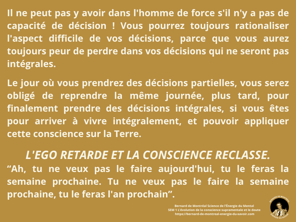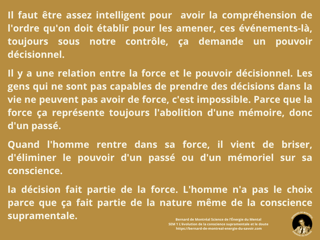 Le doute constitue ici une faille majeure, car il maintient l’être dans la division et empêche la décision intégrale. L’homme doit en arriver à une certitude intérieure vivante, non fondée sur la croyance mais sur l’expérience directe de son intelligence. La décision devient alors un acte clair, sans conflit, libéré des résidus du passé.