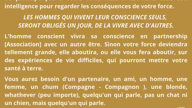 Ainsi, la création de structures par l’homme conscient ne relève ni d’un projet social ni d’un idéal collectif, mais d’unacte individuel maîtrisé, où la puissance, l’équilibre et l’intelligence s’unifient pour faire émerger une nouvelle organisation de la vie, affranchie des mécanismes de dépendance et de domination.