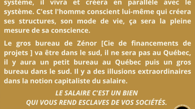 La création de structures nouvelles ne passe pas par la confrontation au système existant, mais par un développement parallèle, autonome, qui échappe progressivement aux lois économiques, sociales et professionnelles actuelles. L’homme conscient ne détruit pas : il dépasse en créant des formes qui rendent les anciennes obsolètes.