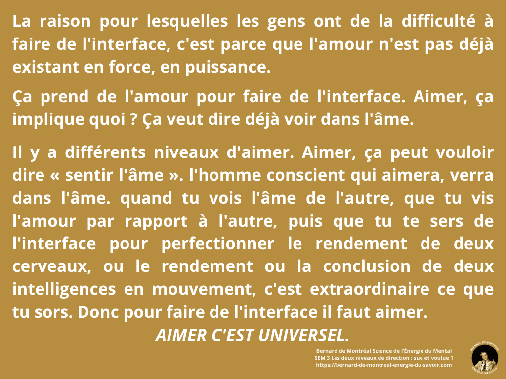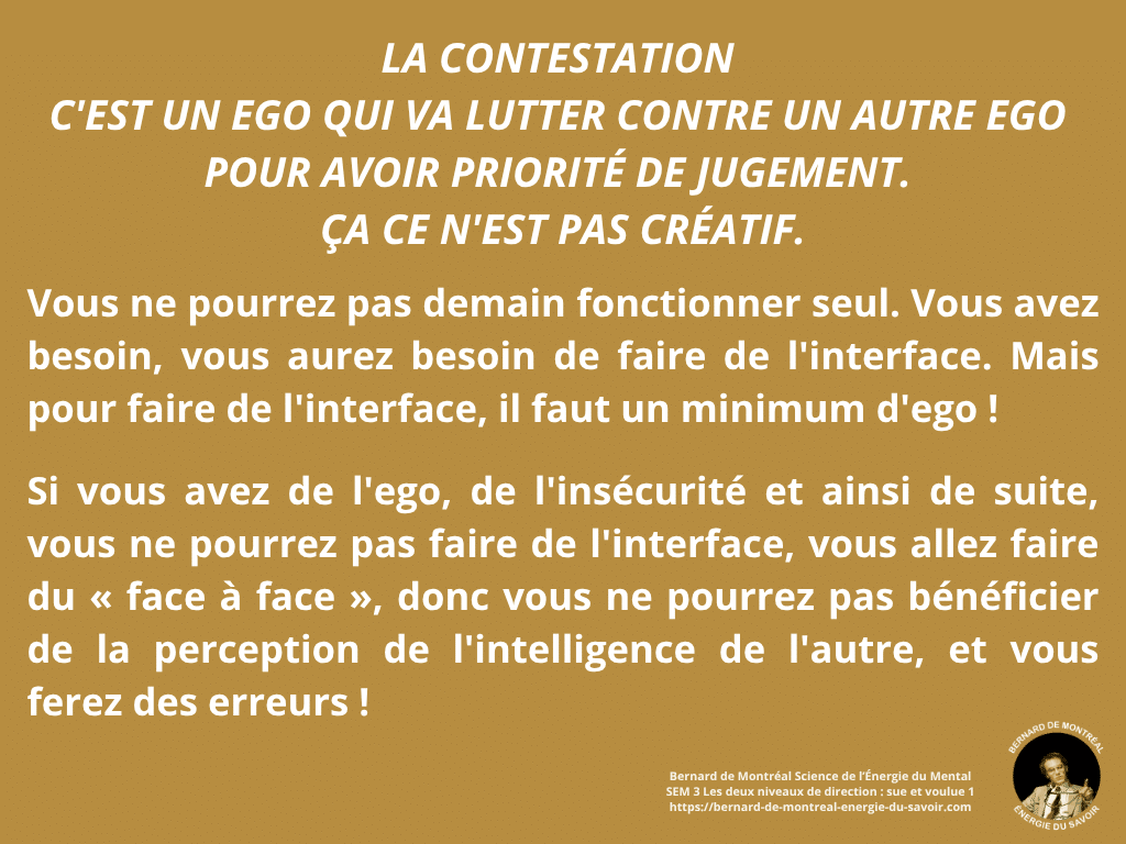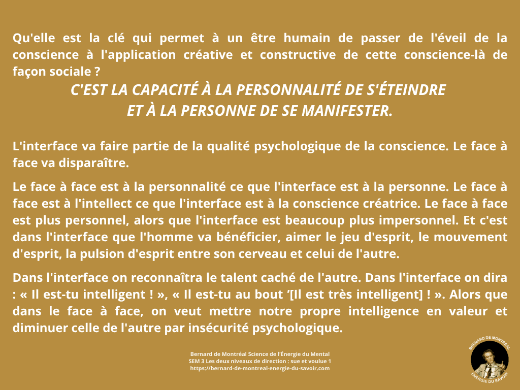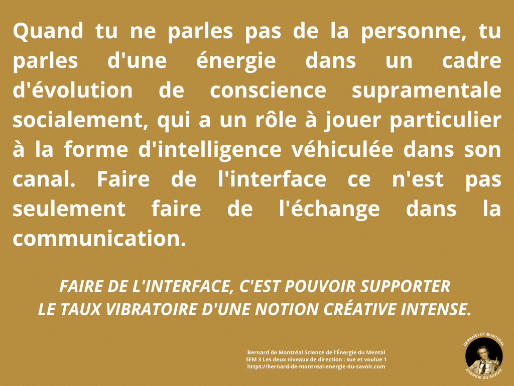 Les deux niveaux de direction — sue et voulue — révèlent la mécanique réelle de l’action chez l’homme conscient, où l’intelligence immédiate de l’énergie rencontre la capacité de structuration, donnant naissance à une communication d’interface qui dépasse toute confrontation et toute domination de l’ego.