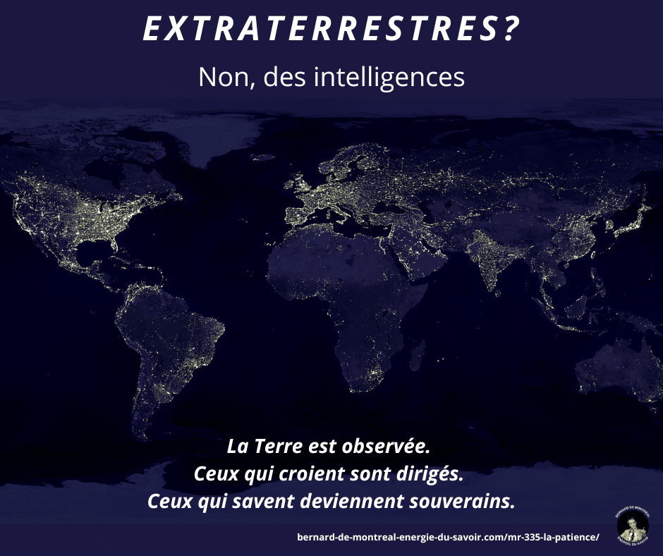 Pour Bernard de Montréal, le terme « extraterrestre » appartient au vocabulaire immature de l’homme. Il réduit des réalités complexes à une imagerie simpliste. Il lui préfère le terme plus exact d’Intelligences, qui rend compte de leur nature réelle plutôt que de leur apparence supposée.